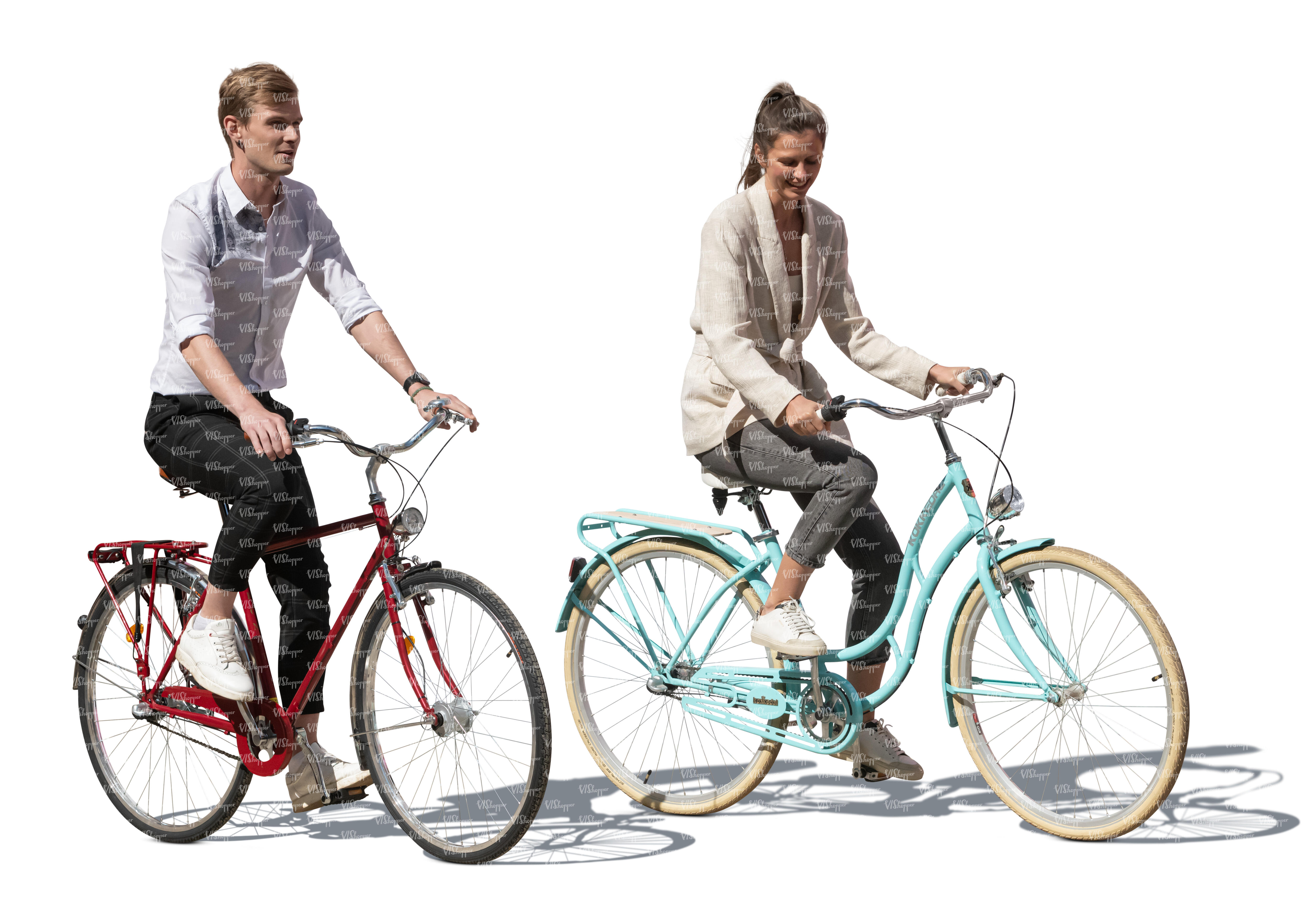 • cut out man and woman standing and talking while drinking refreshing drinks