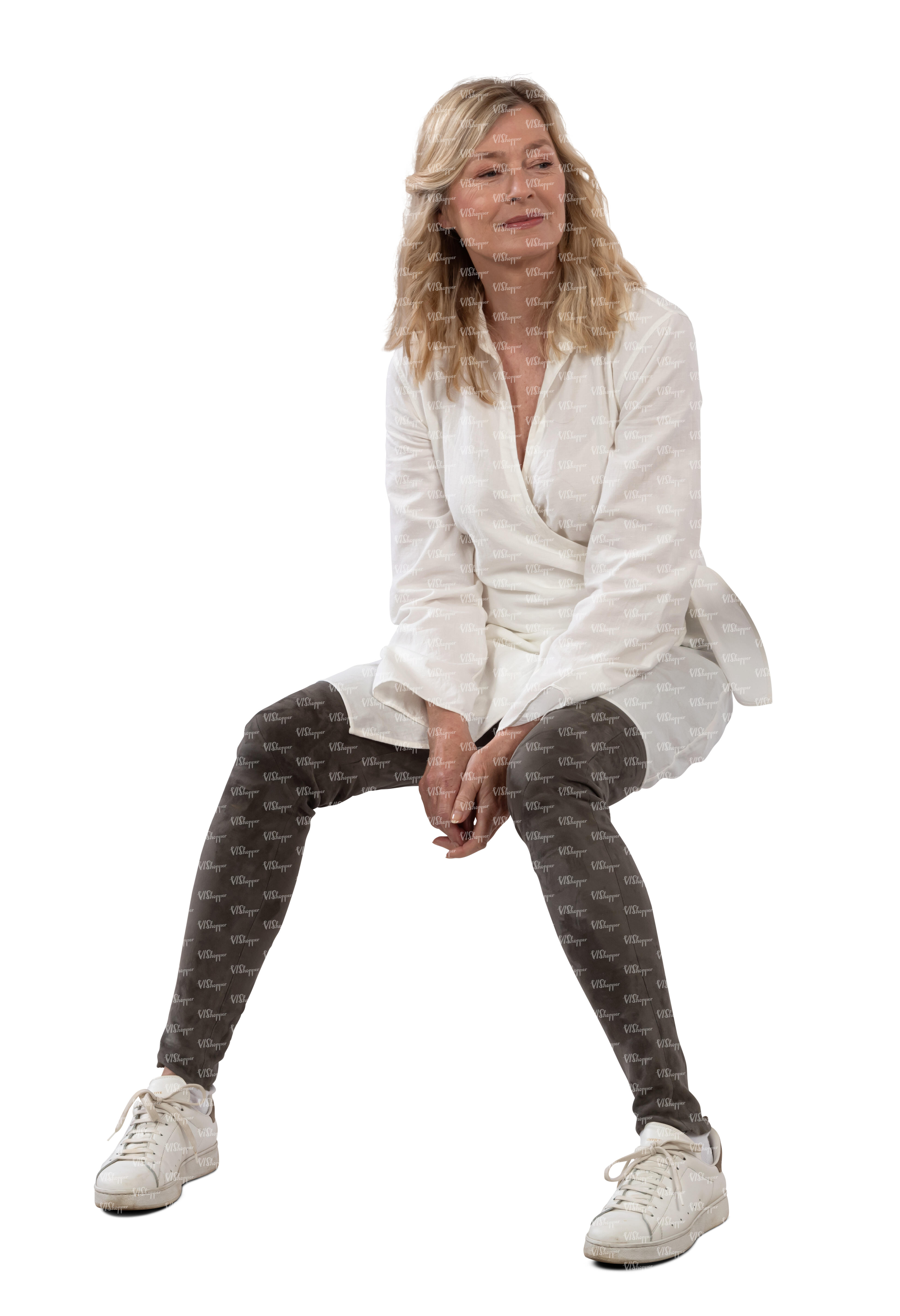 • woman wearing a white blouse sitting