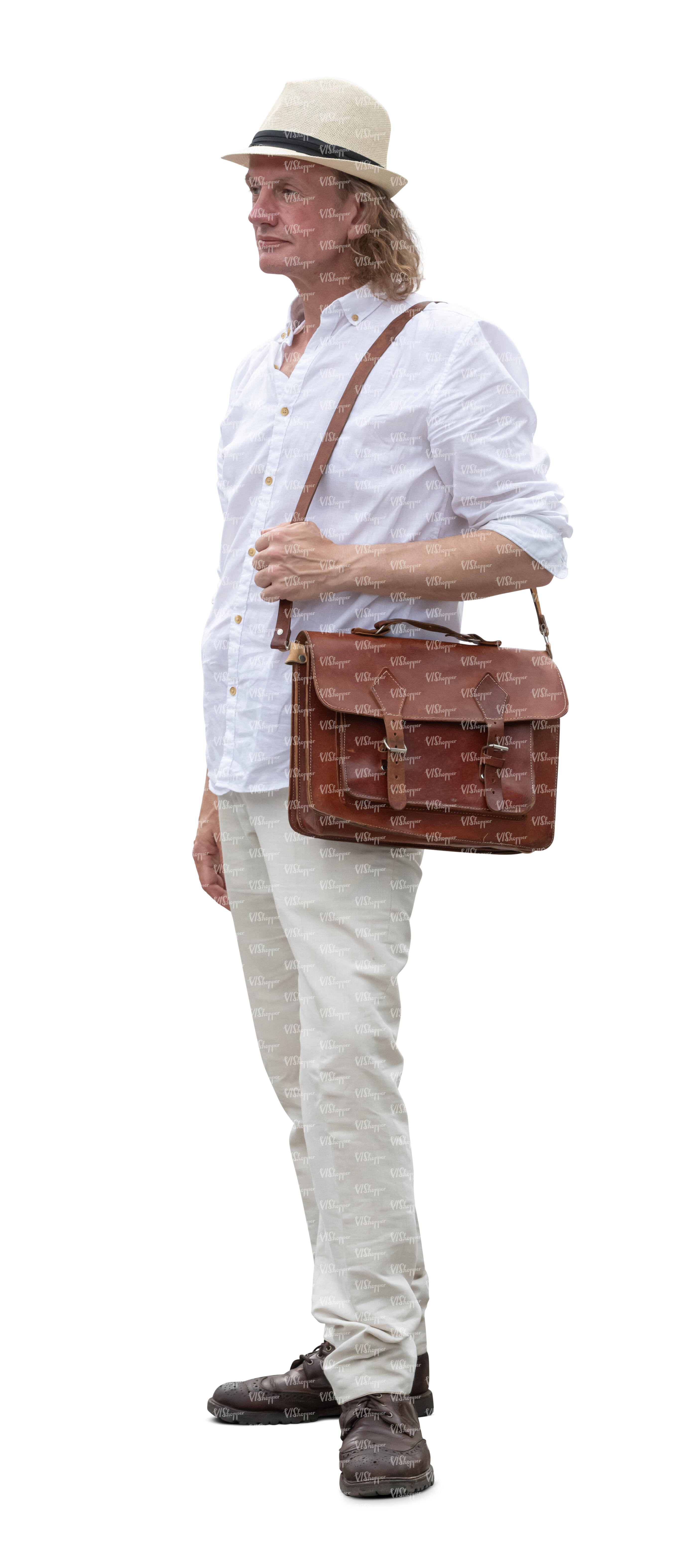 • man with a hat and white summer shirt standing