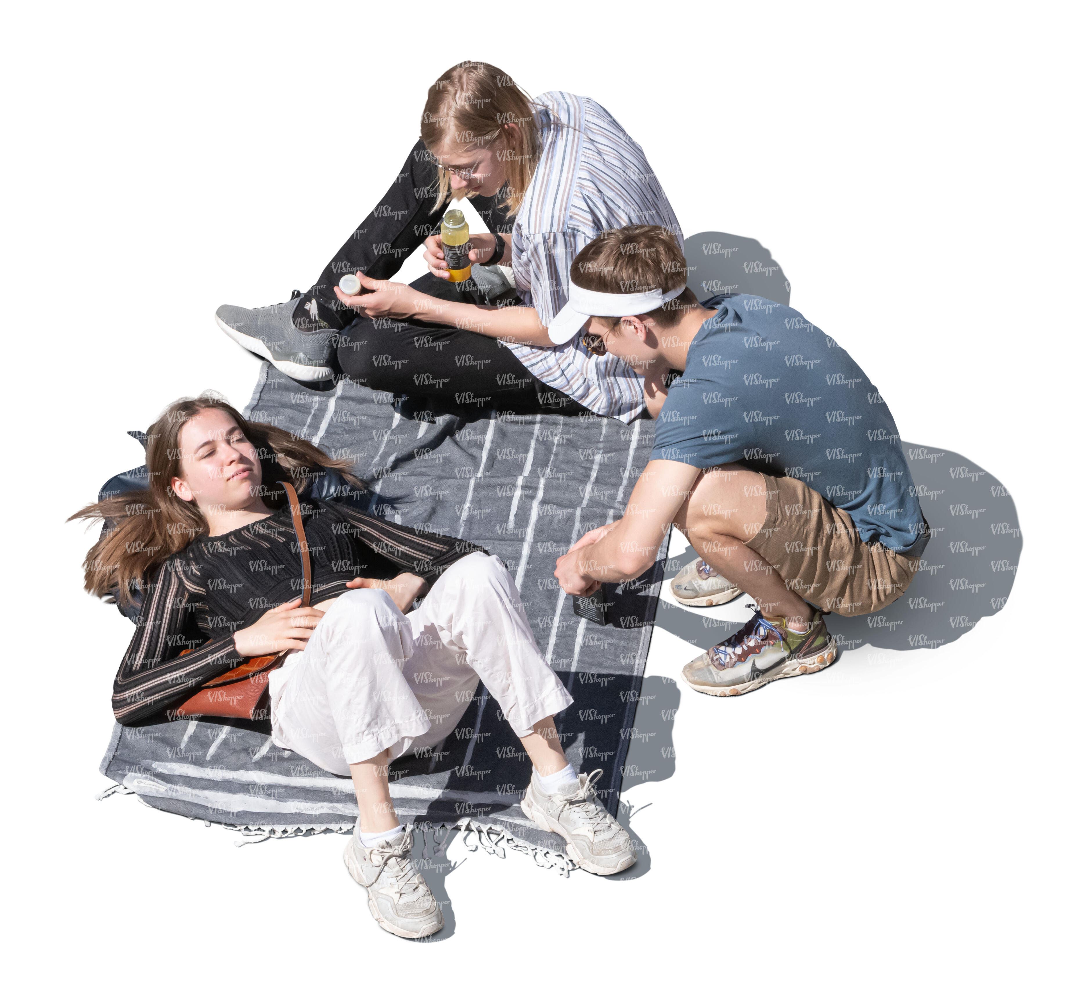 • group of teenagers having a picnic seen from above