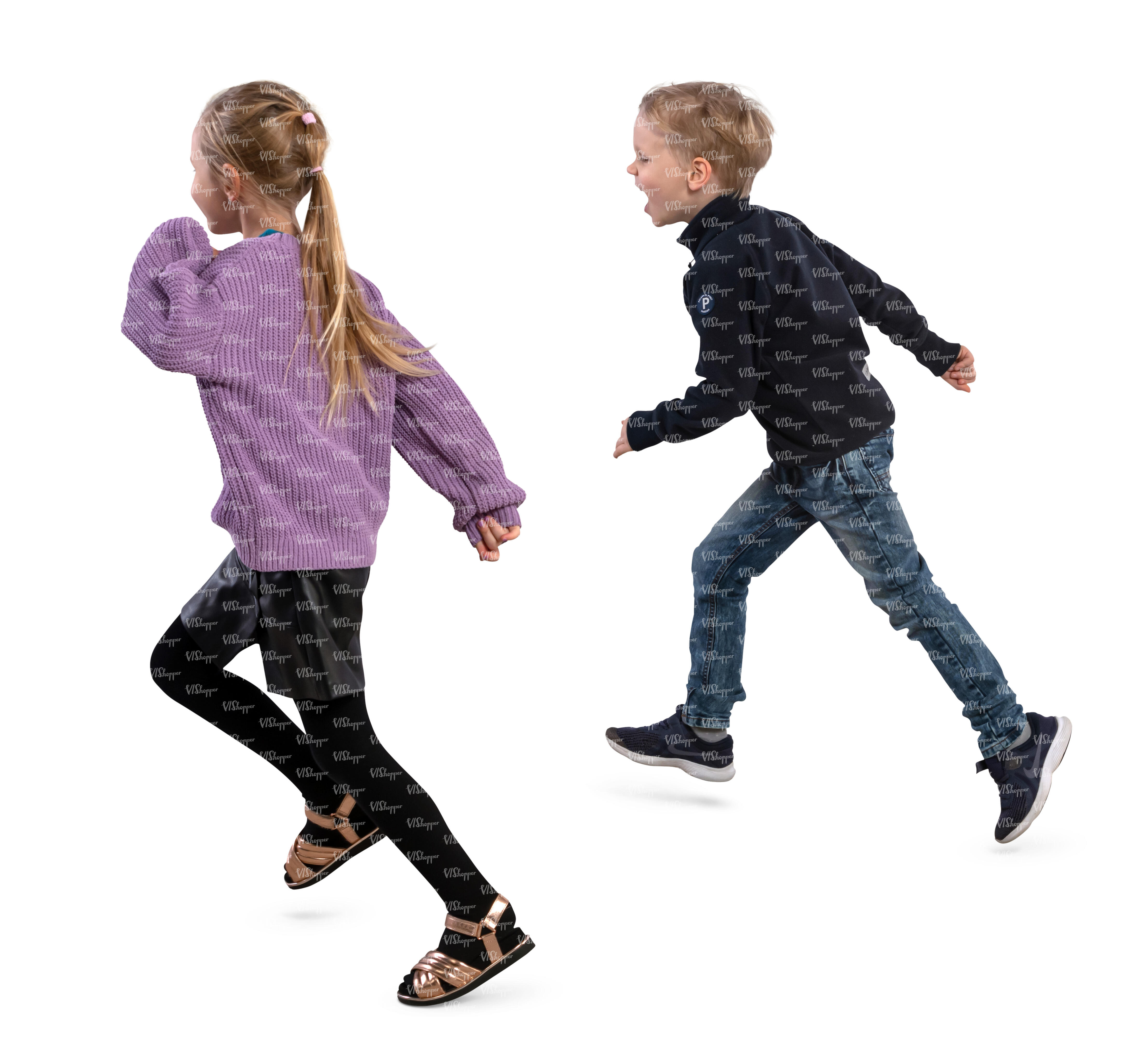 two cut out kids running