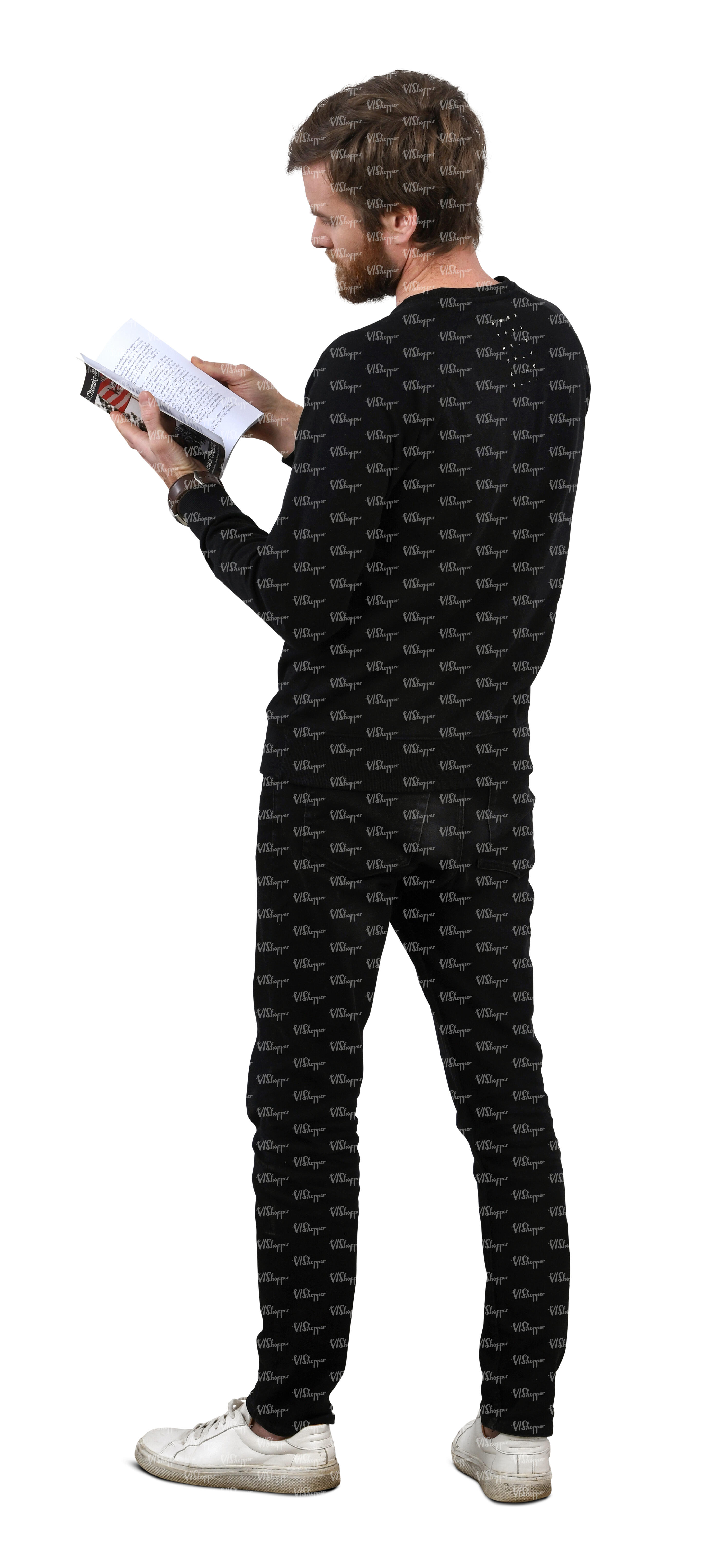 • cut out man standing and reading a book