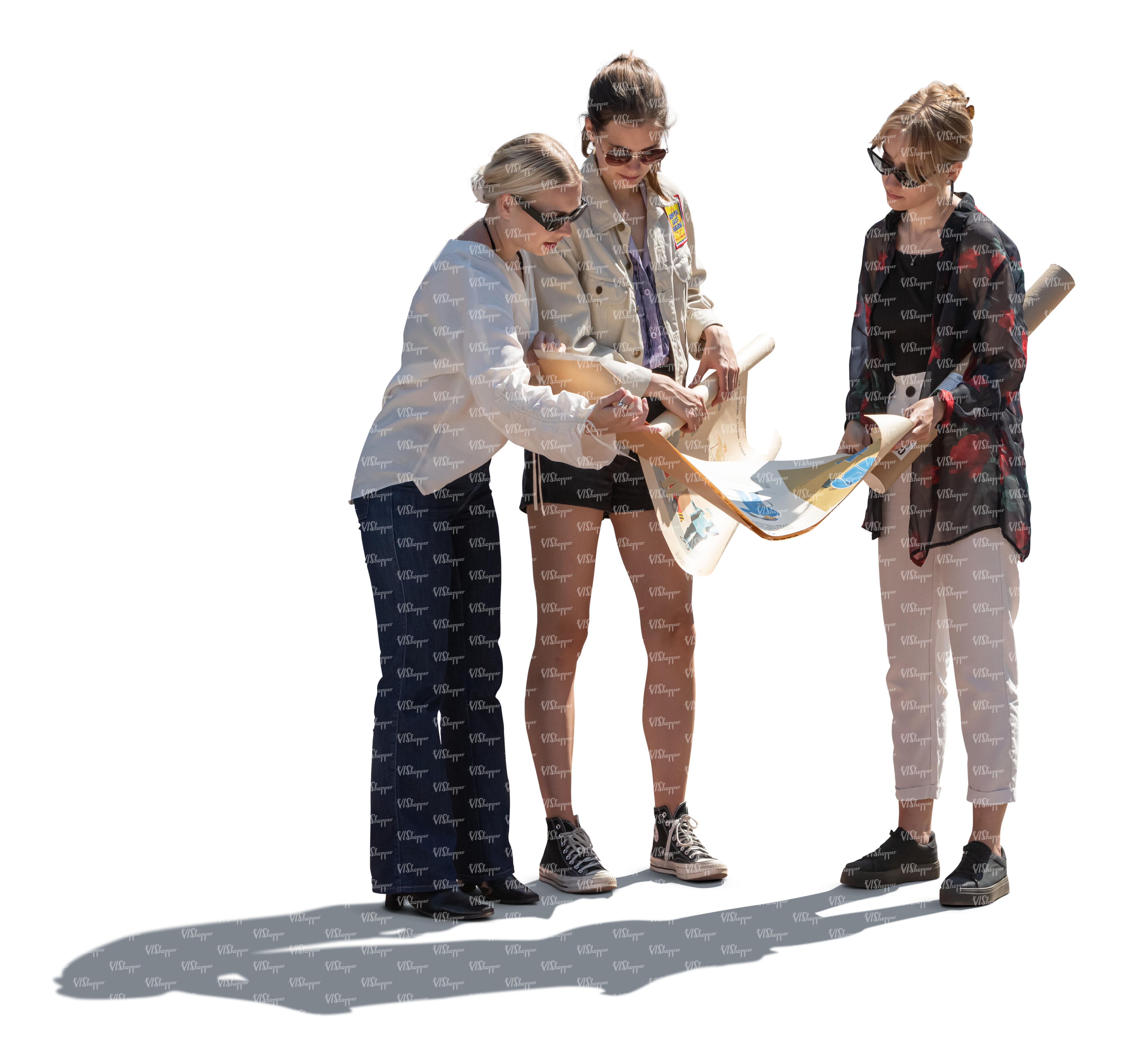 cut out backlit group of women looking at some project papers