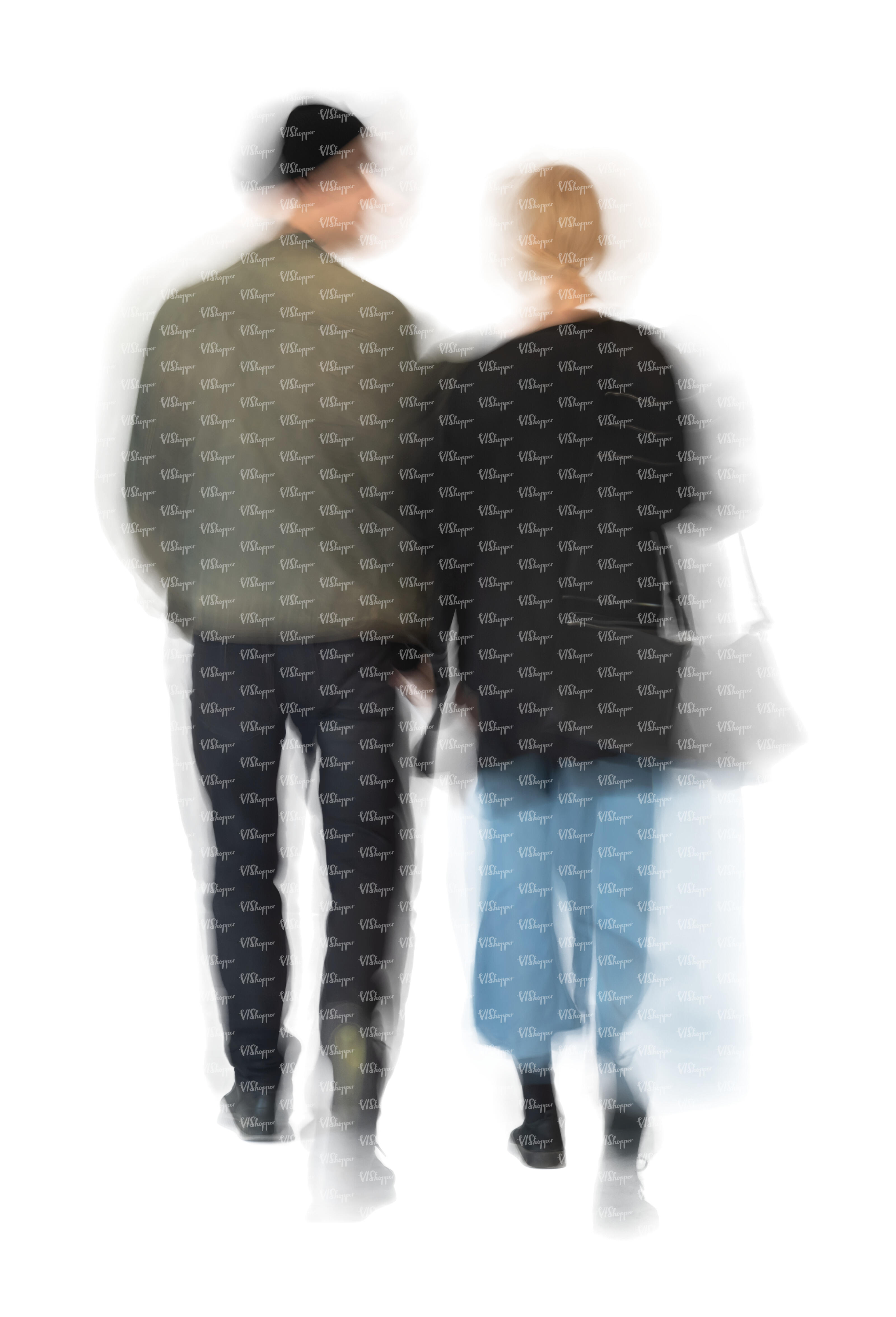 cut out motion blur image of two people walking