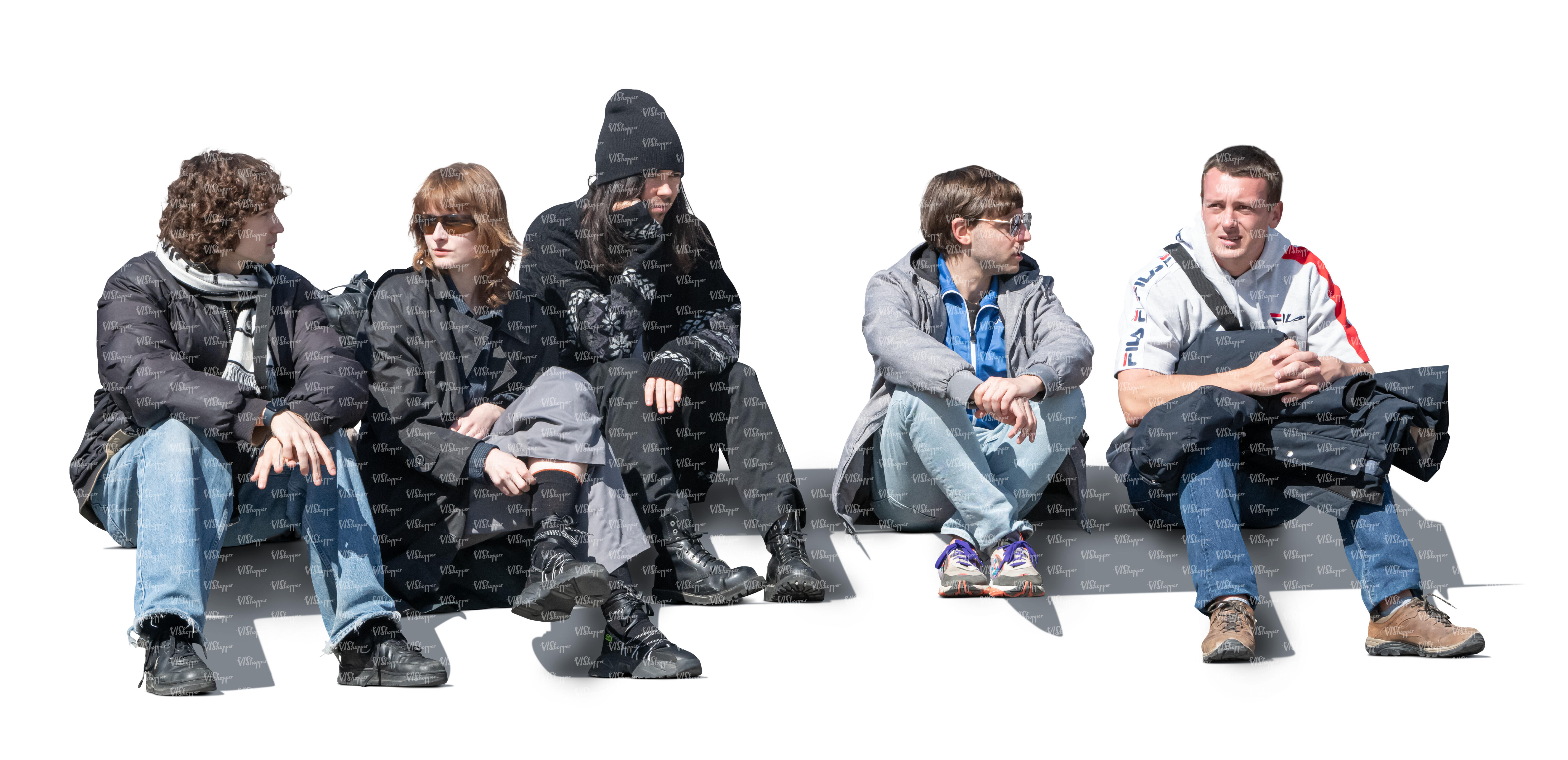 • cut out group of people sitting in a hipster cafe with pallet furniture