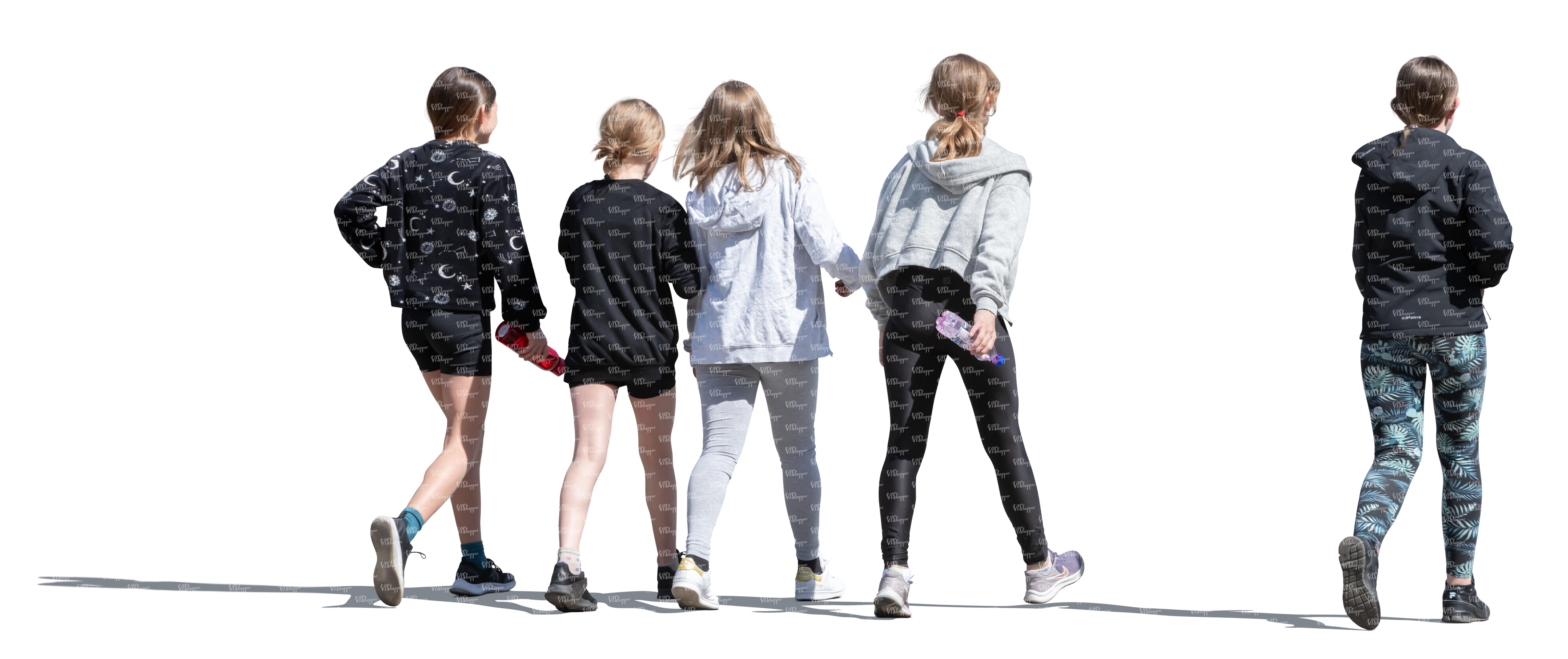 • cut out multinational group of friends walking