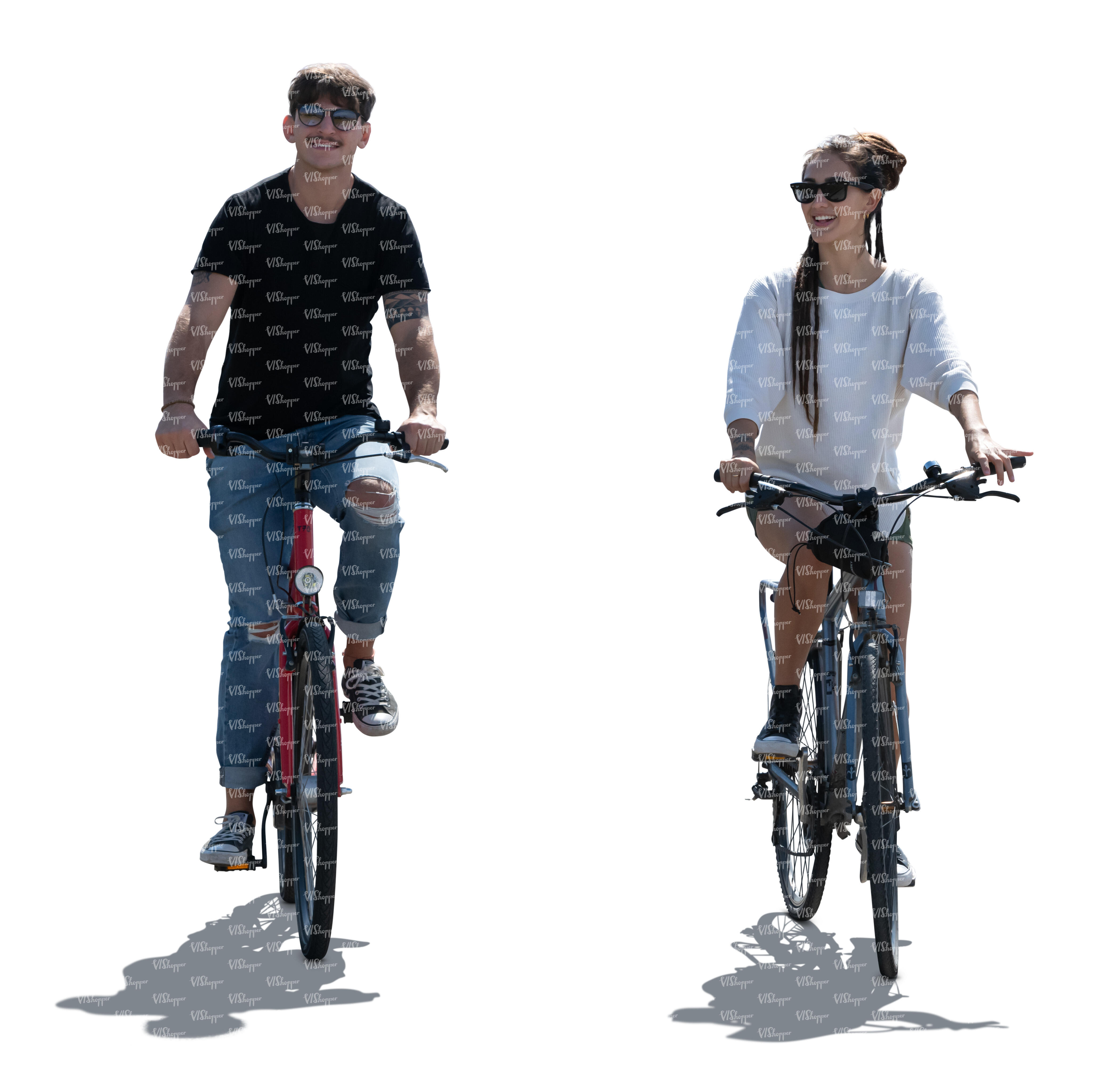 • cut out man and woman standing and talking while drinking refreshing drinks