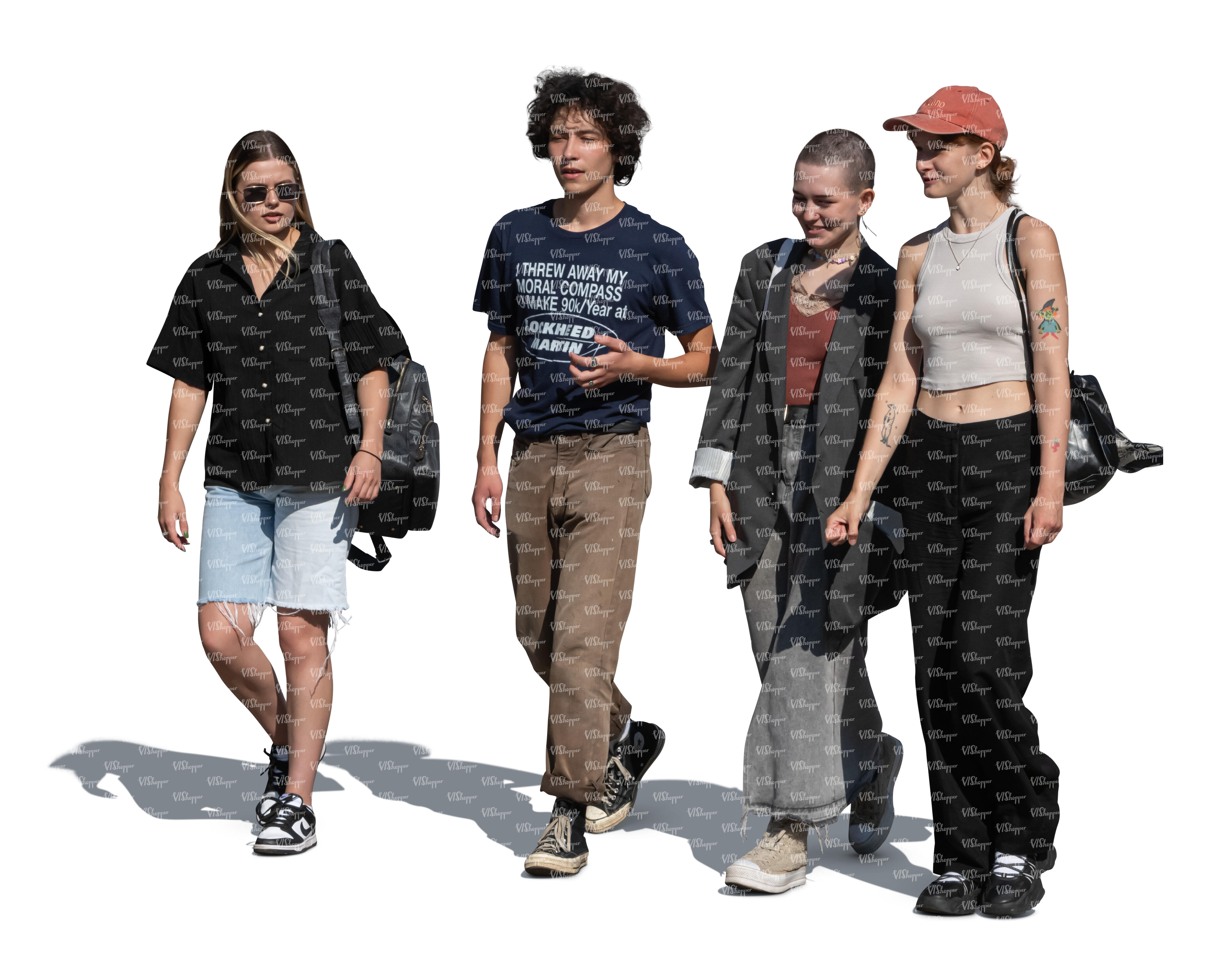 • cut out group of four friends walking