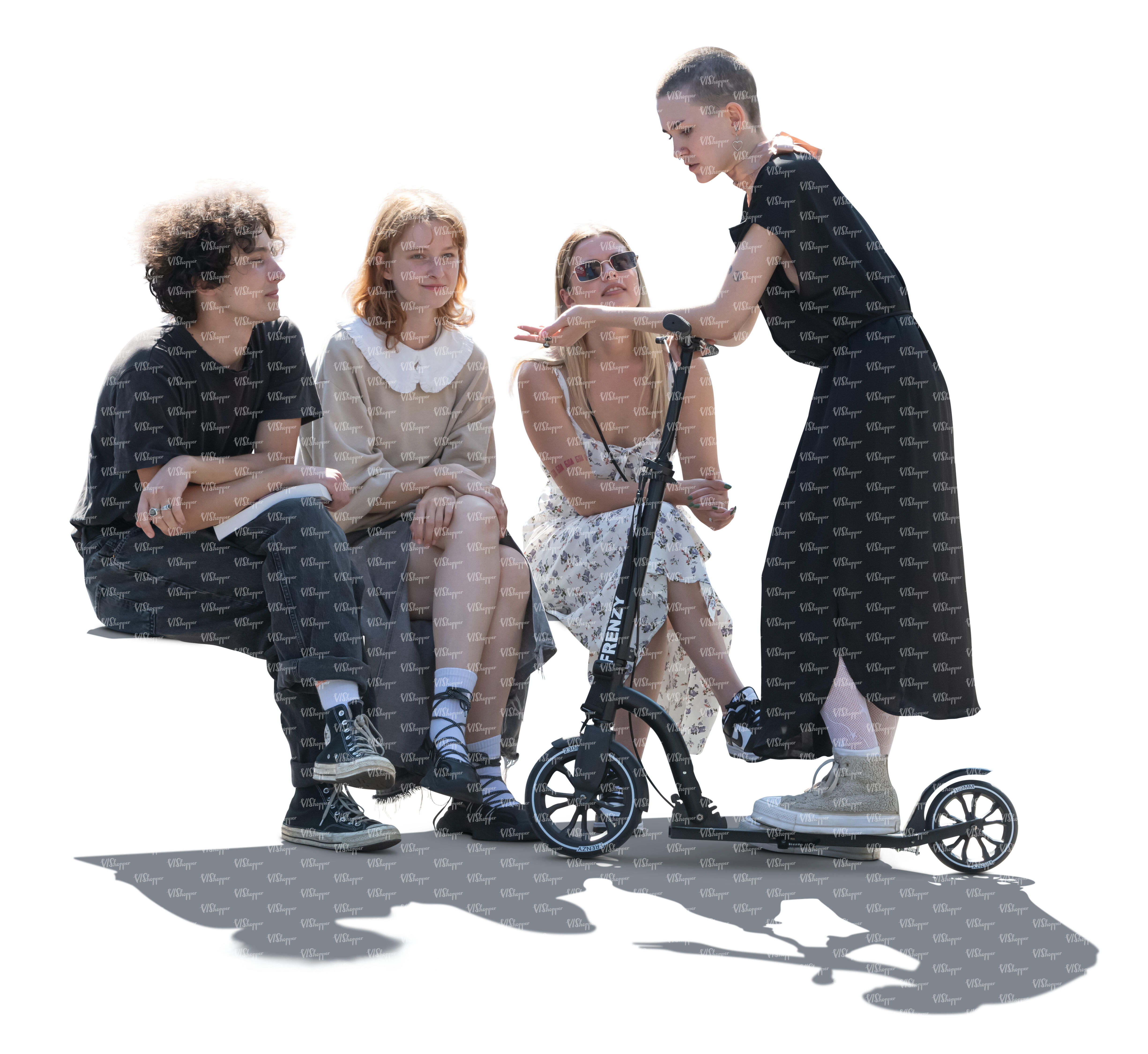 • cut out group of three friends standing in partial tree shade