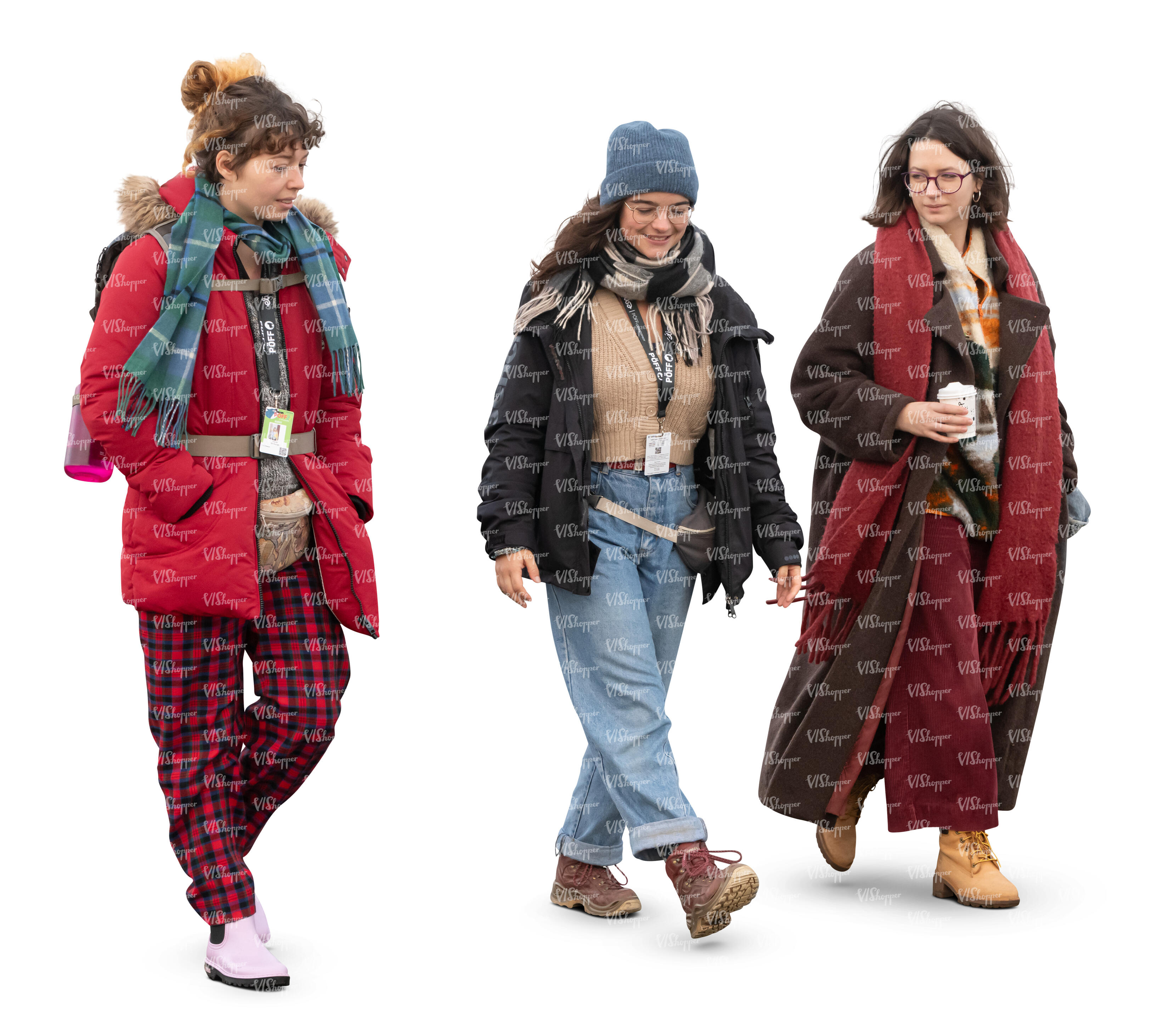 • cut out multinational group of friends walking