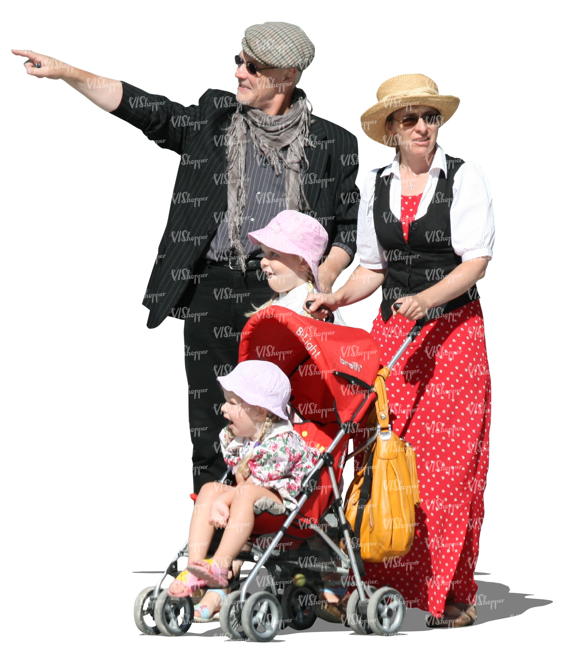 • cut out family with two kids walking in summer