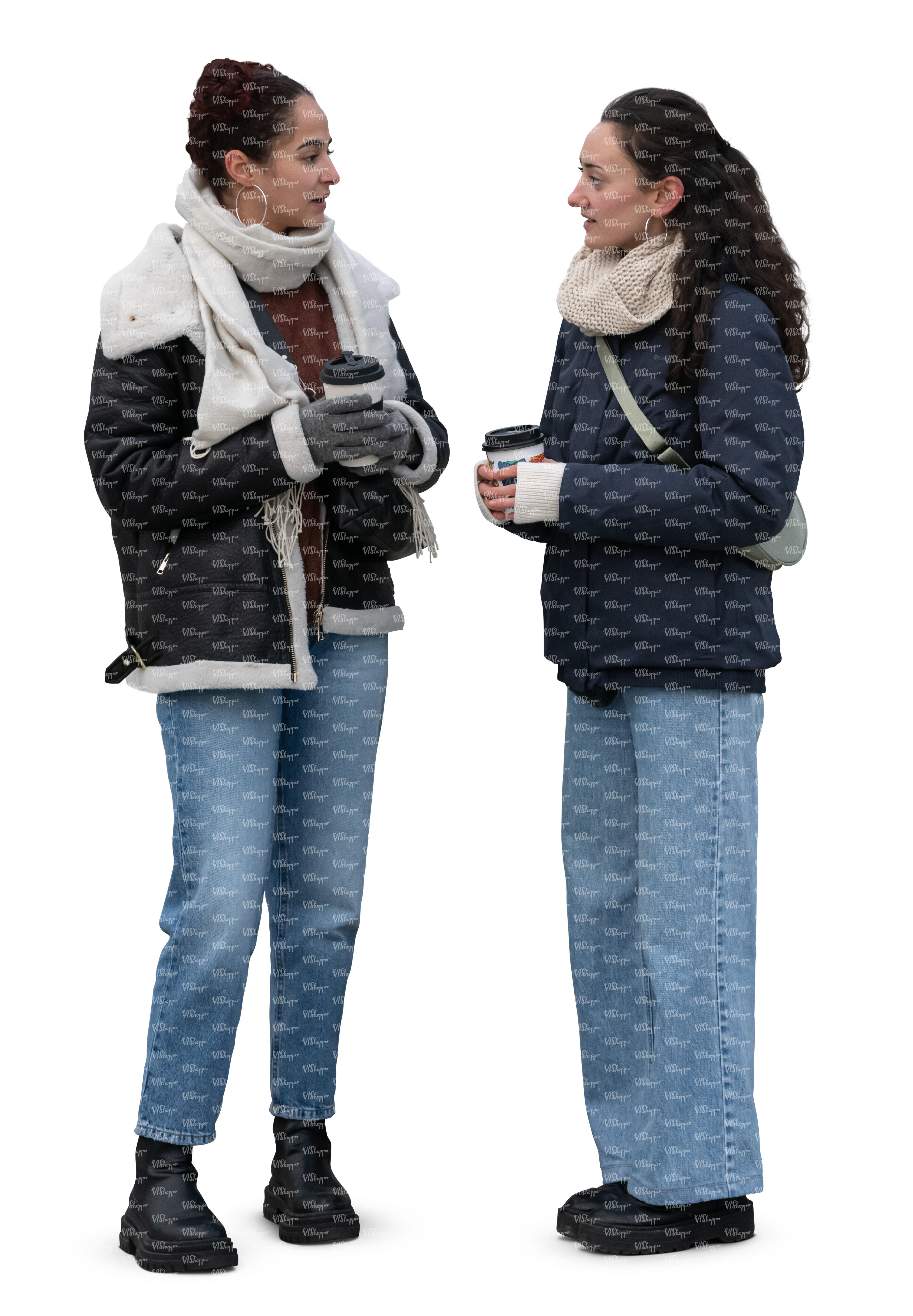 • cut out man and woman standing and talking while drinking refreshing drinks