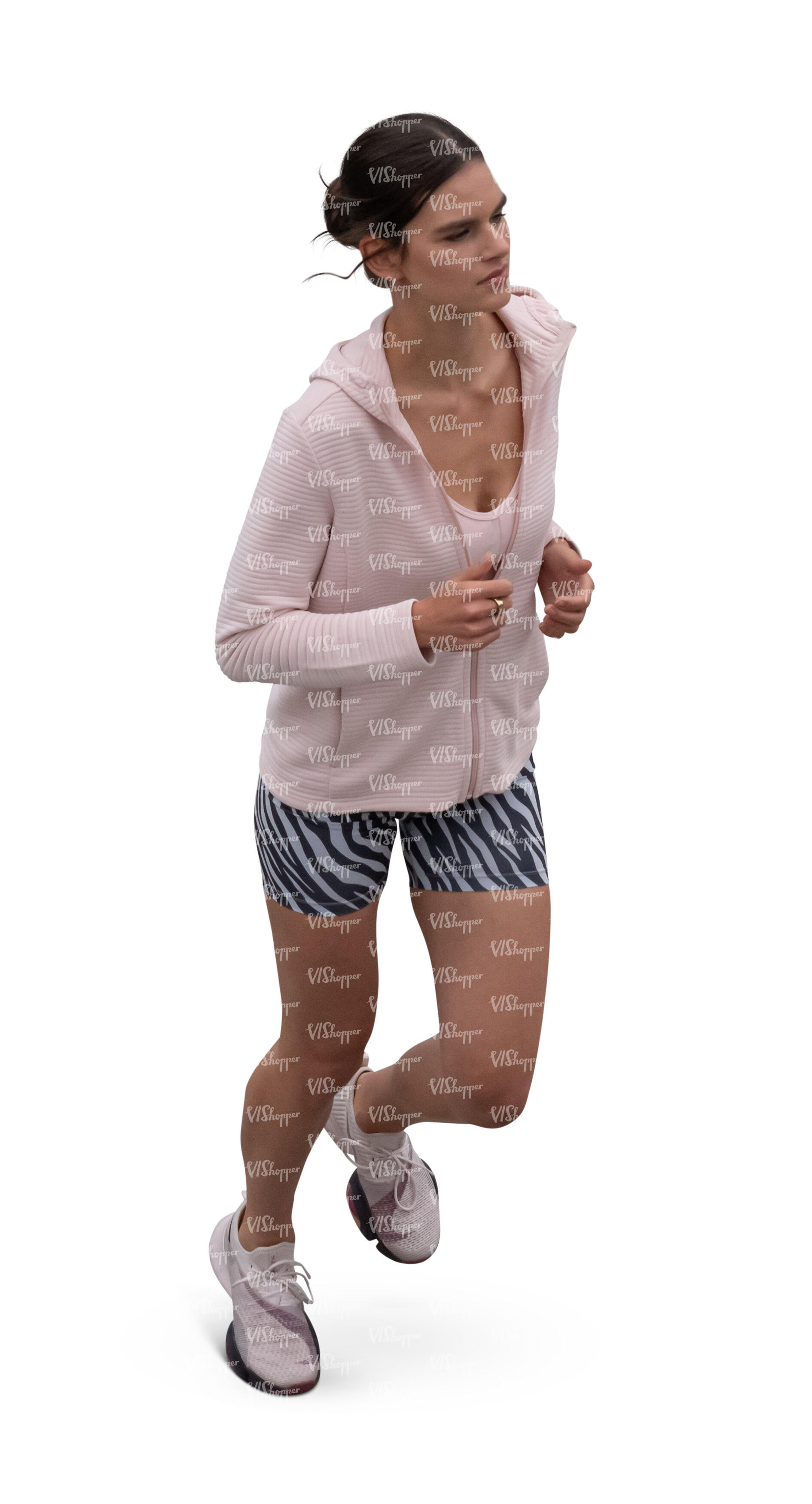 top view of a young woman running