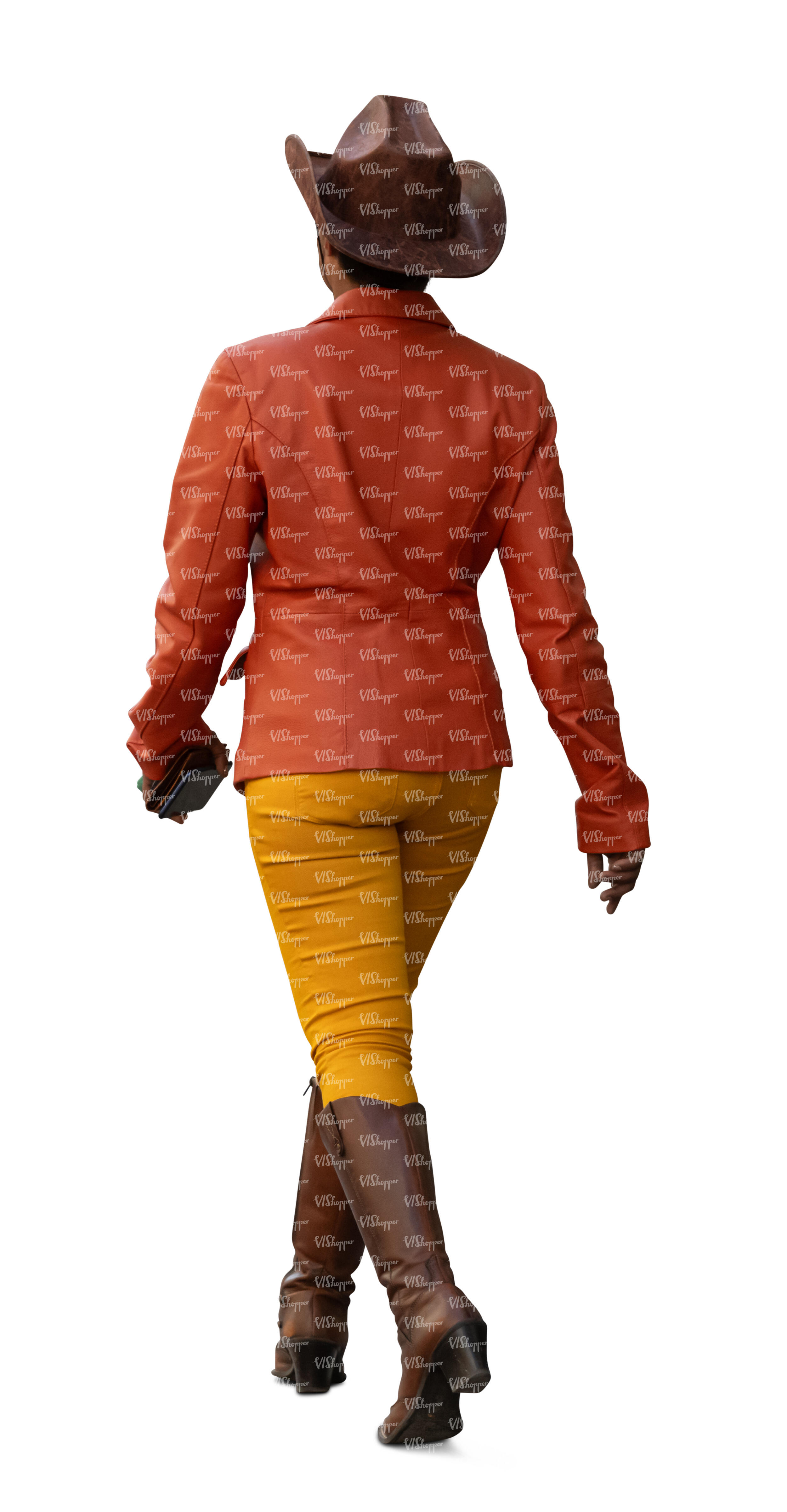 • woman with a cowboy hat and boots walking