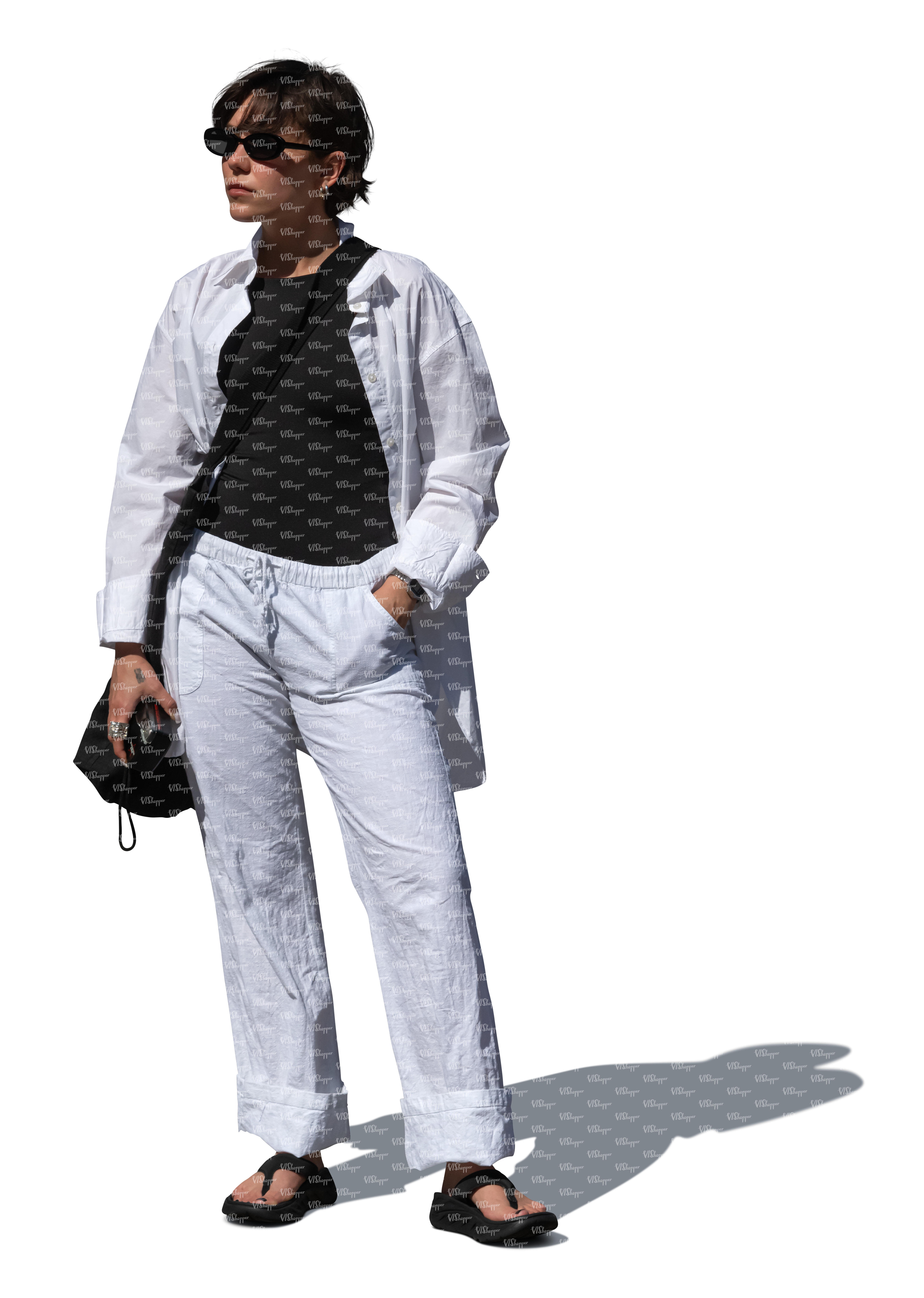 • cut out woman in casual summer outfit standing