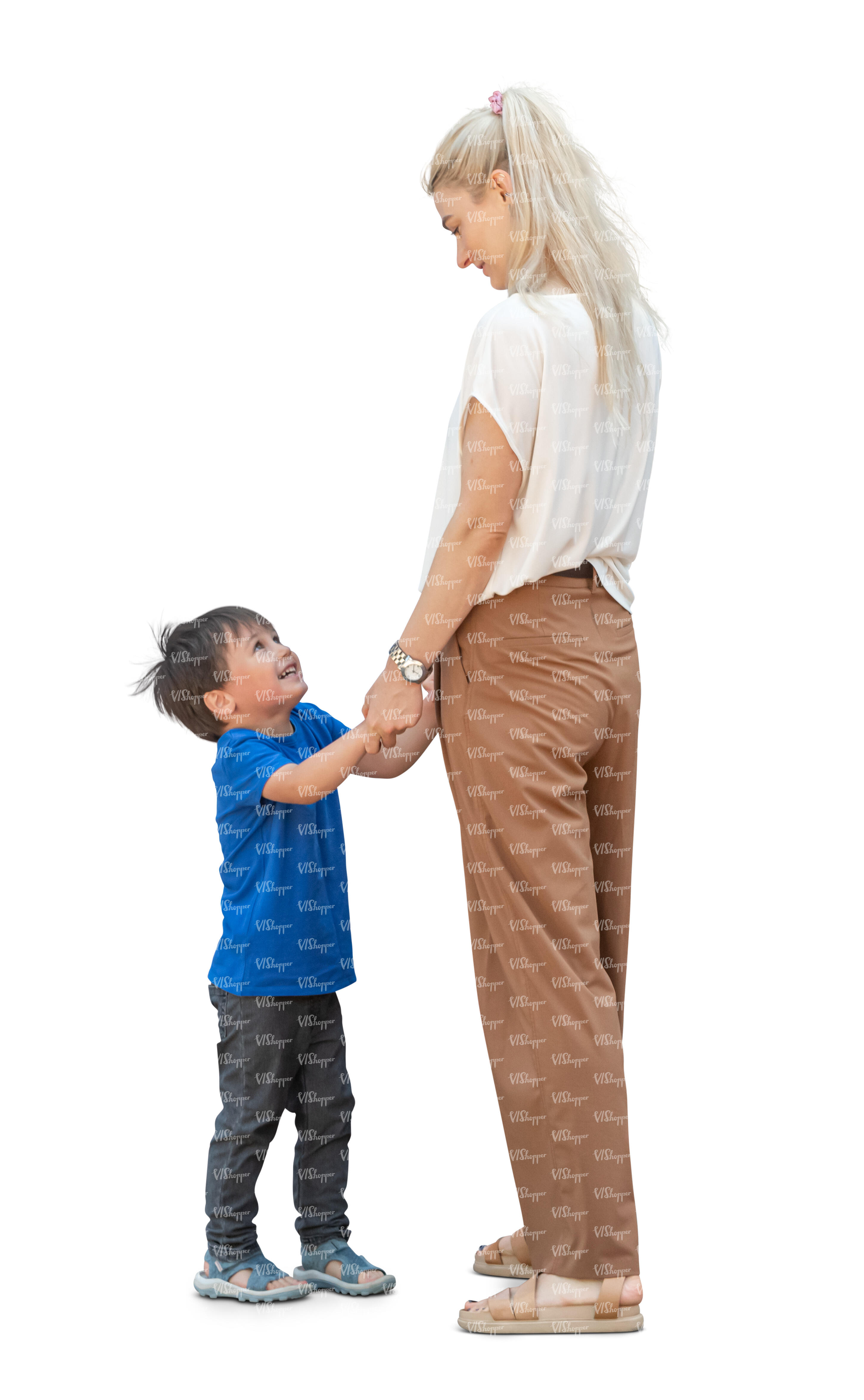 • mother and son standing together