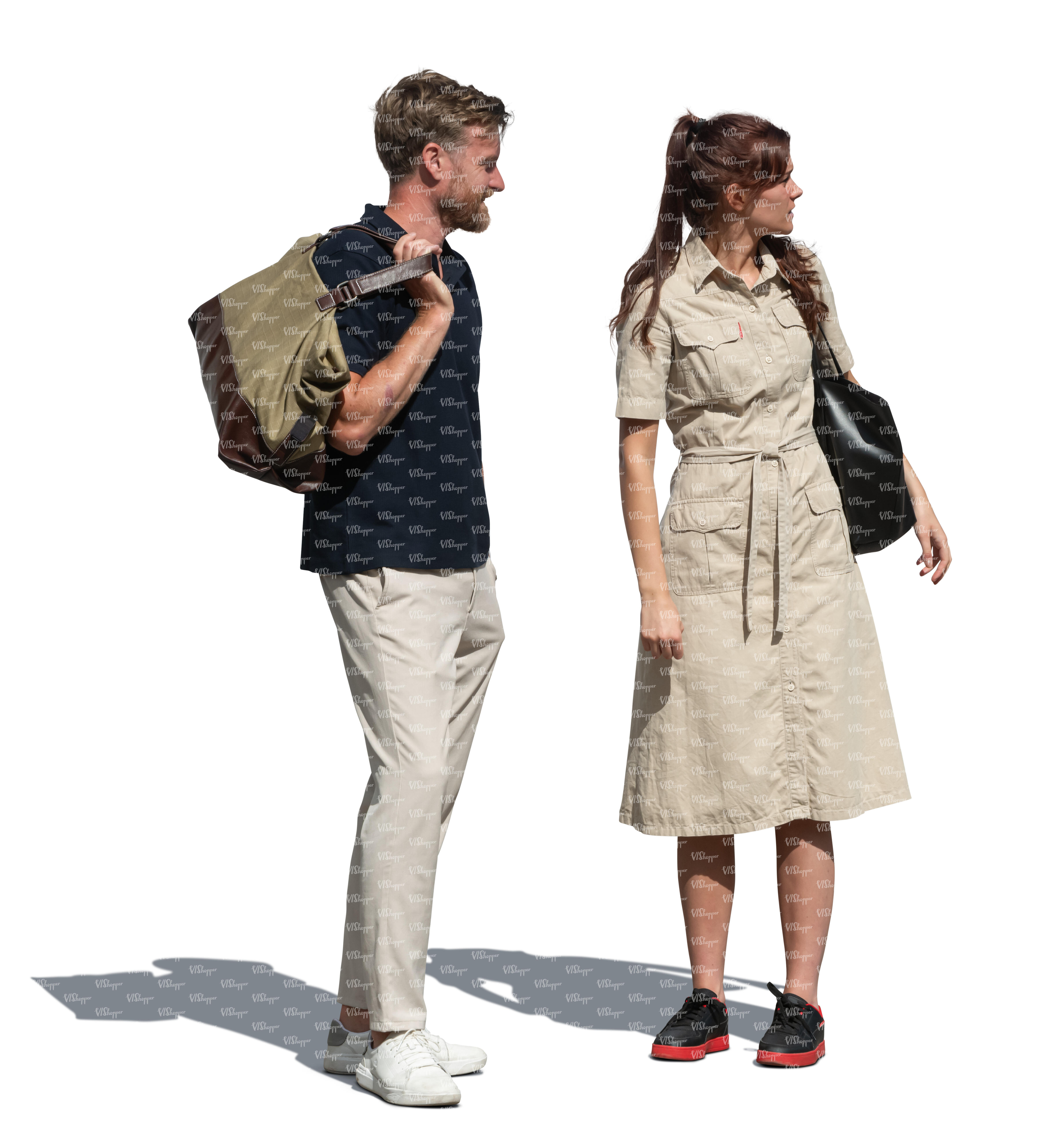 • cut out couple in tree shade walking