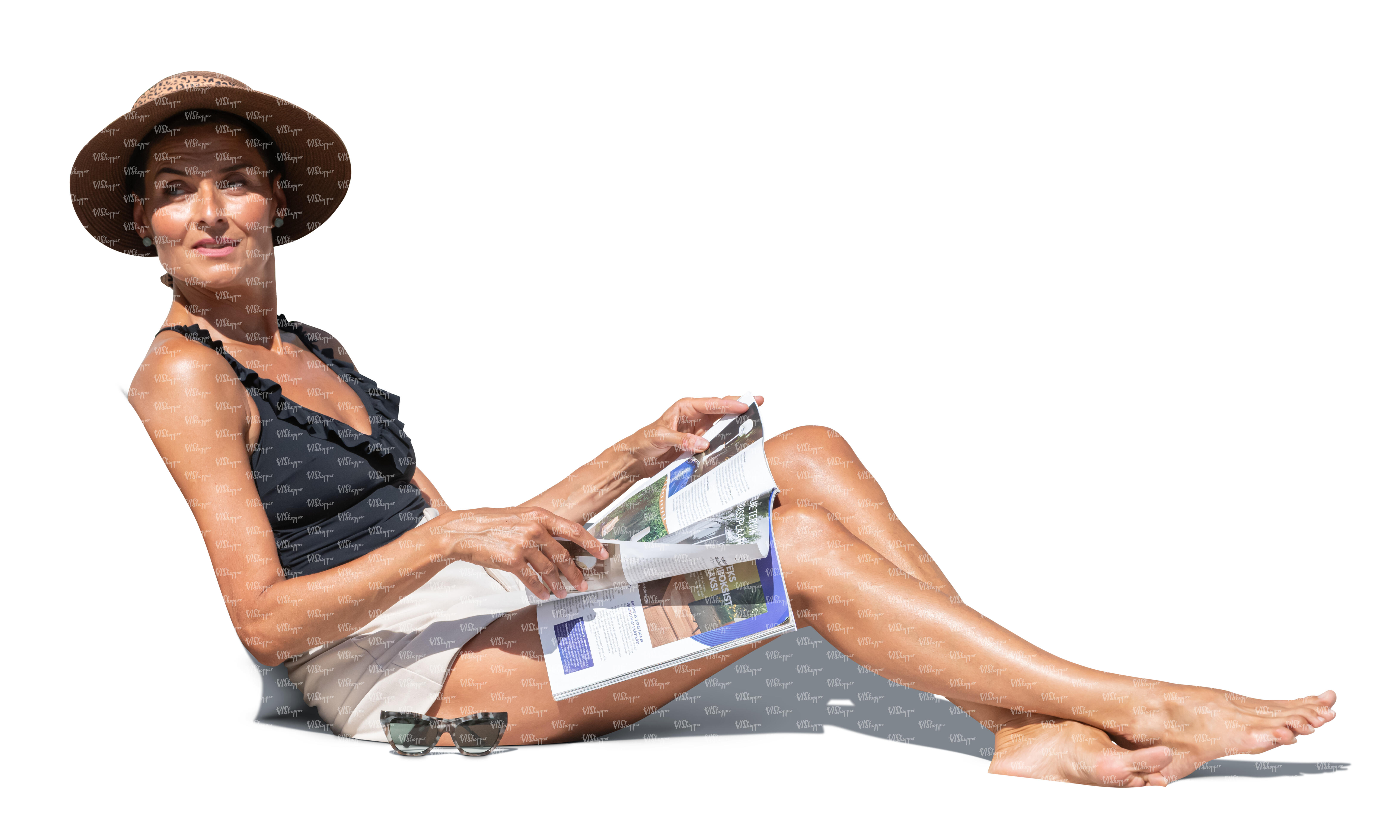 • cut out woman lying on a sofa in the sun and reading a magazine
