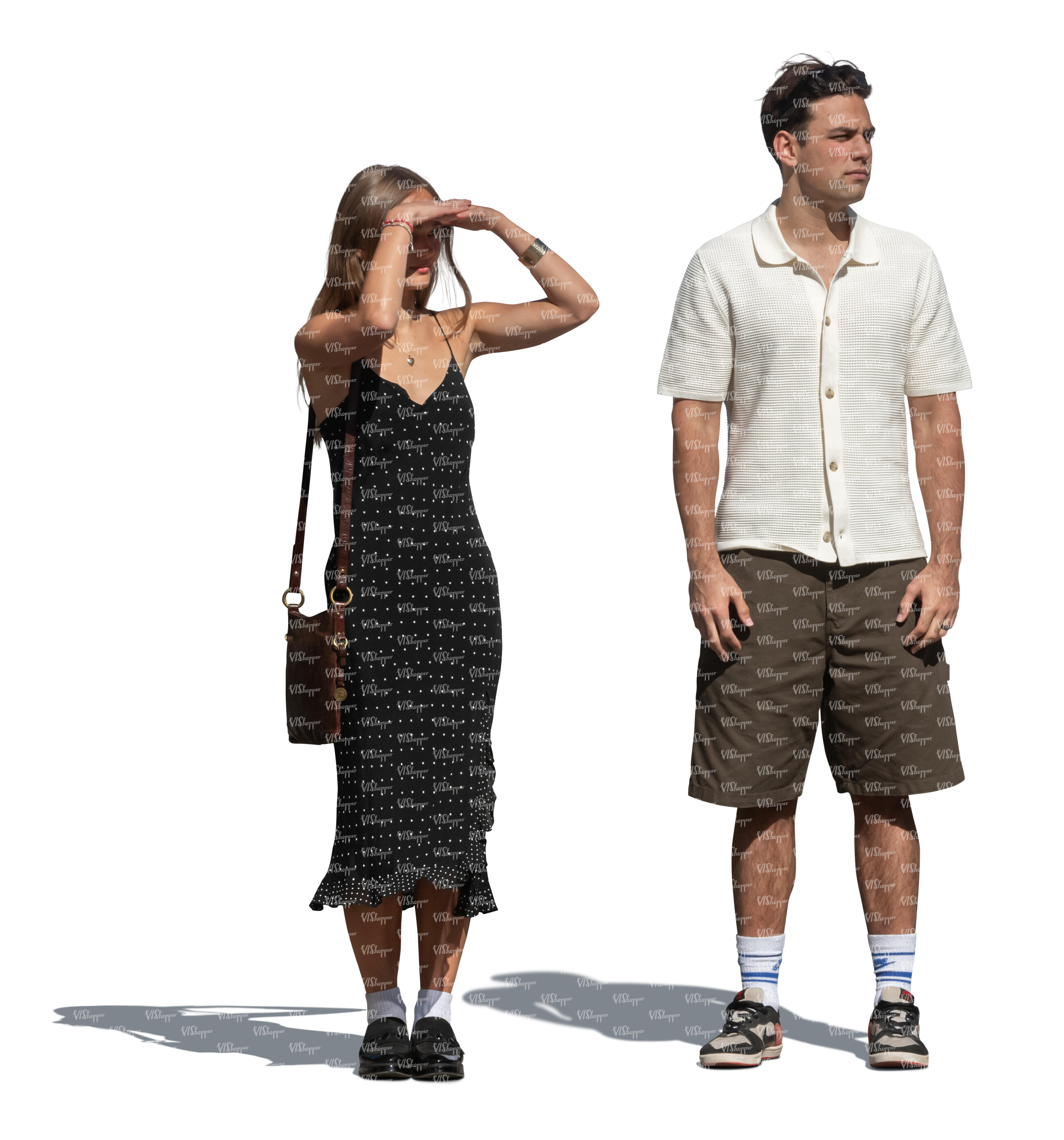 two cut out people standing and looking into distance