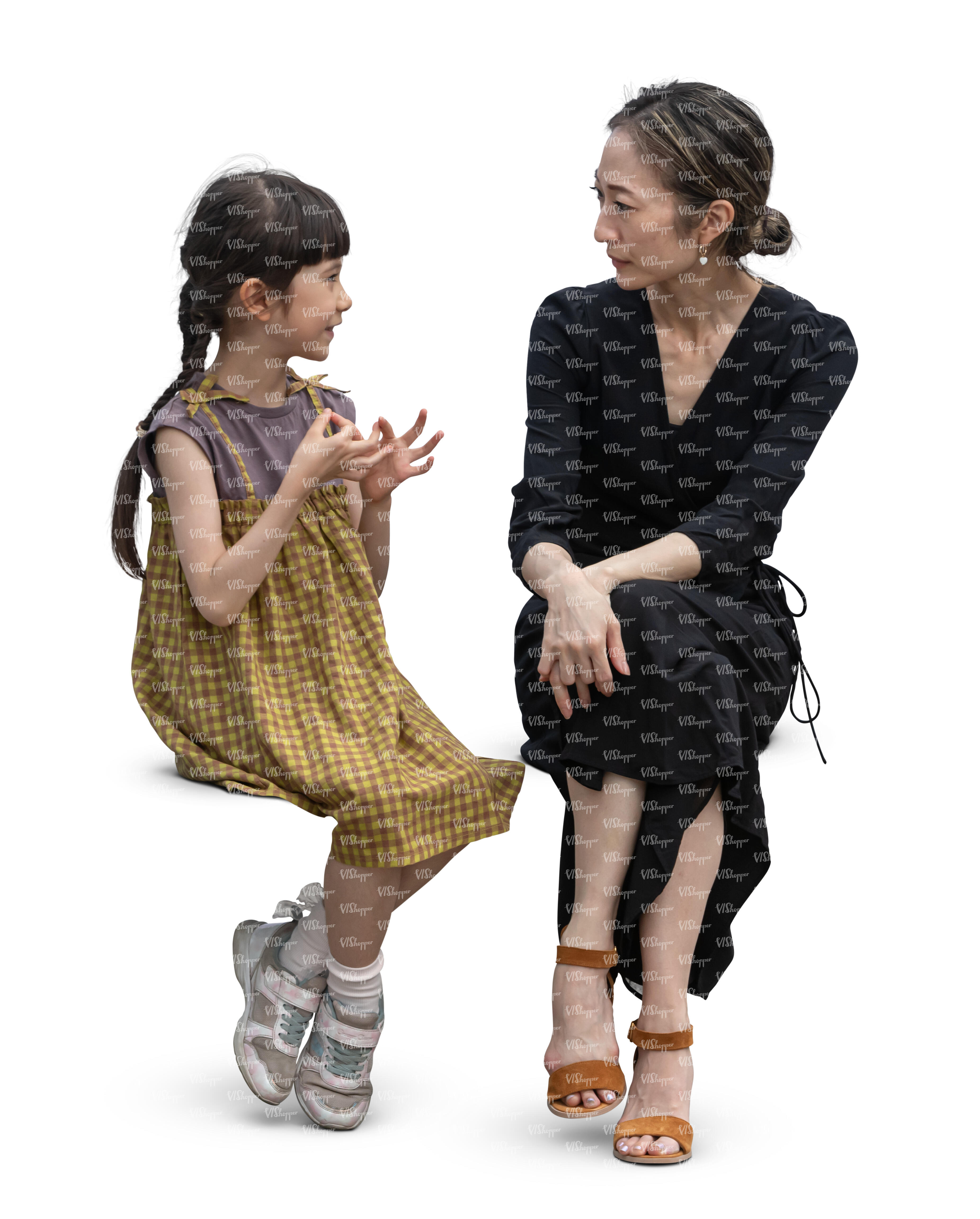 cut out japanese woman and child sitting together