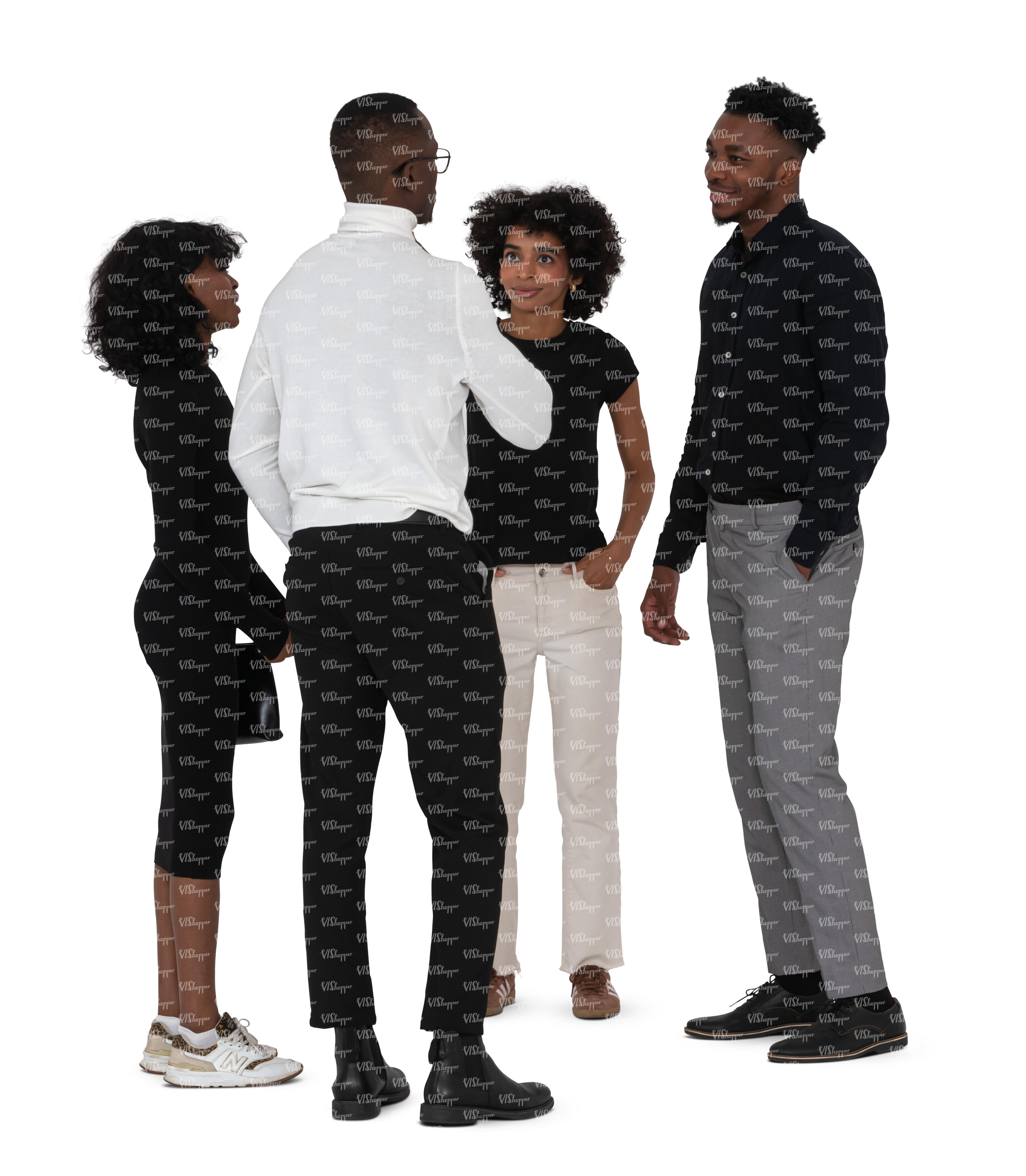 • cut out group of four friends walking
