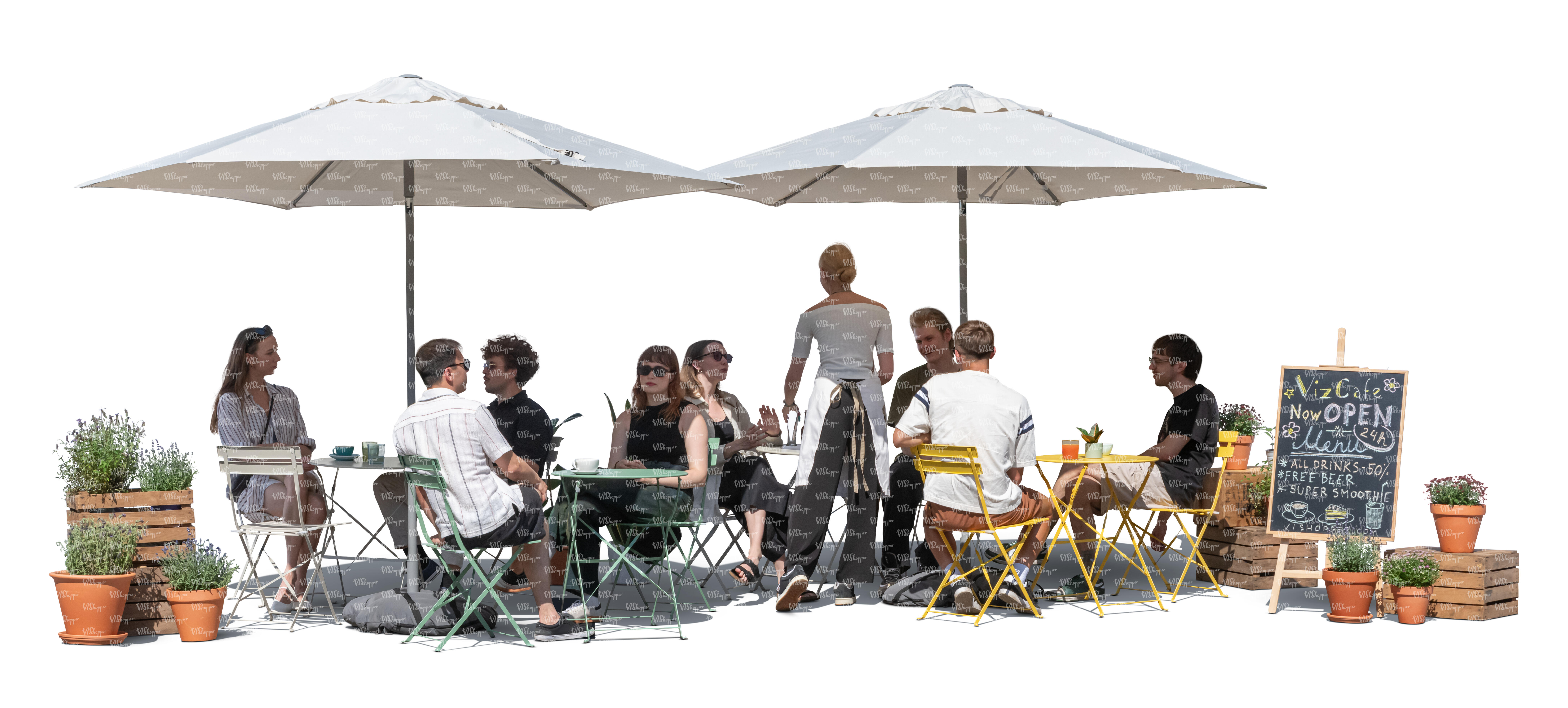 • cut out group of people sitting in a hipster cafe with pallet furniture