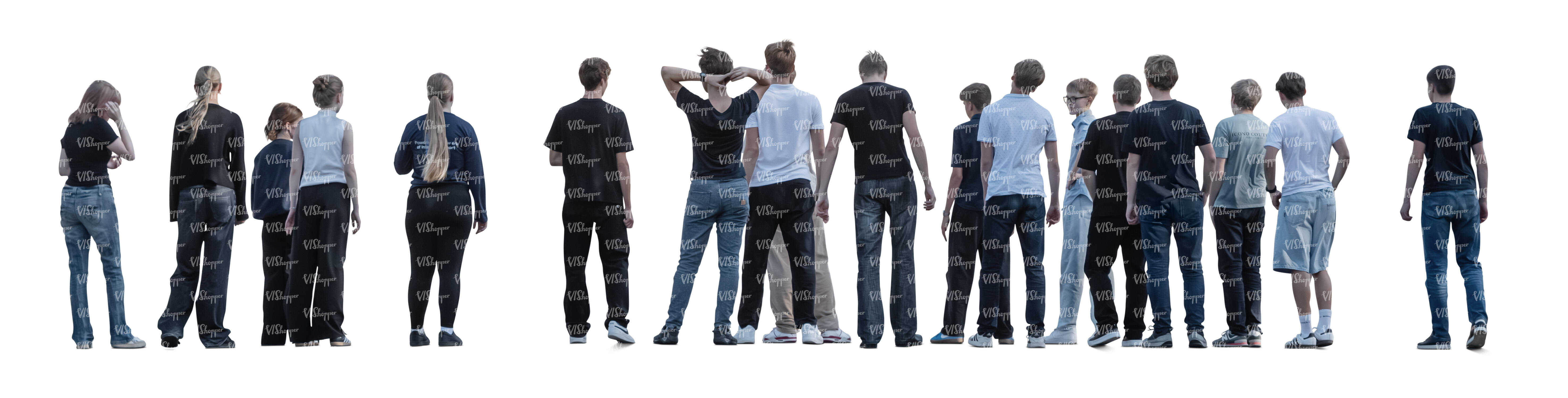 • cut out large group of young people standing and looking at smth
