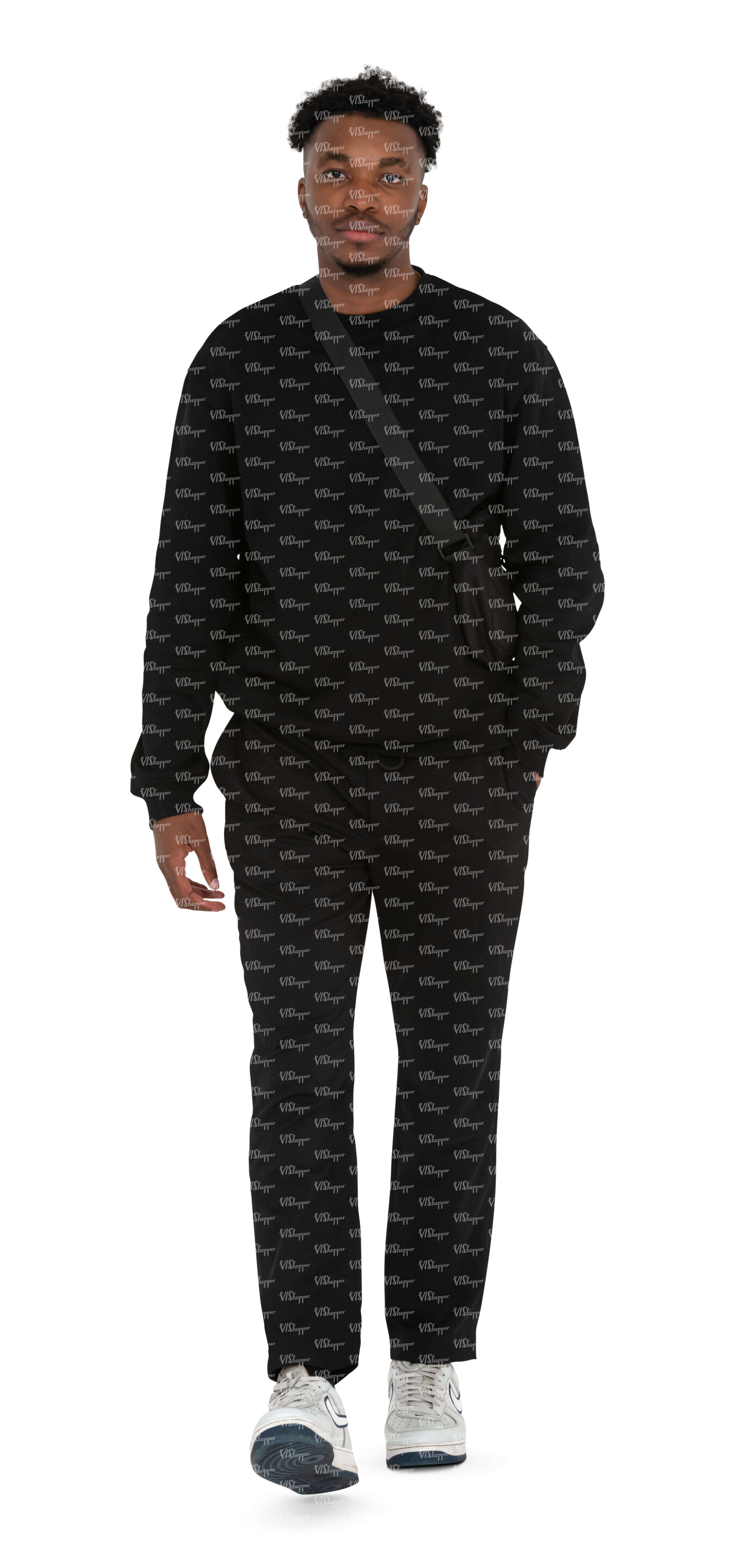 cut out black man casually walking