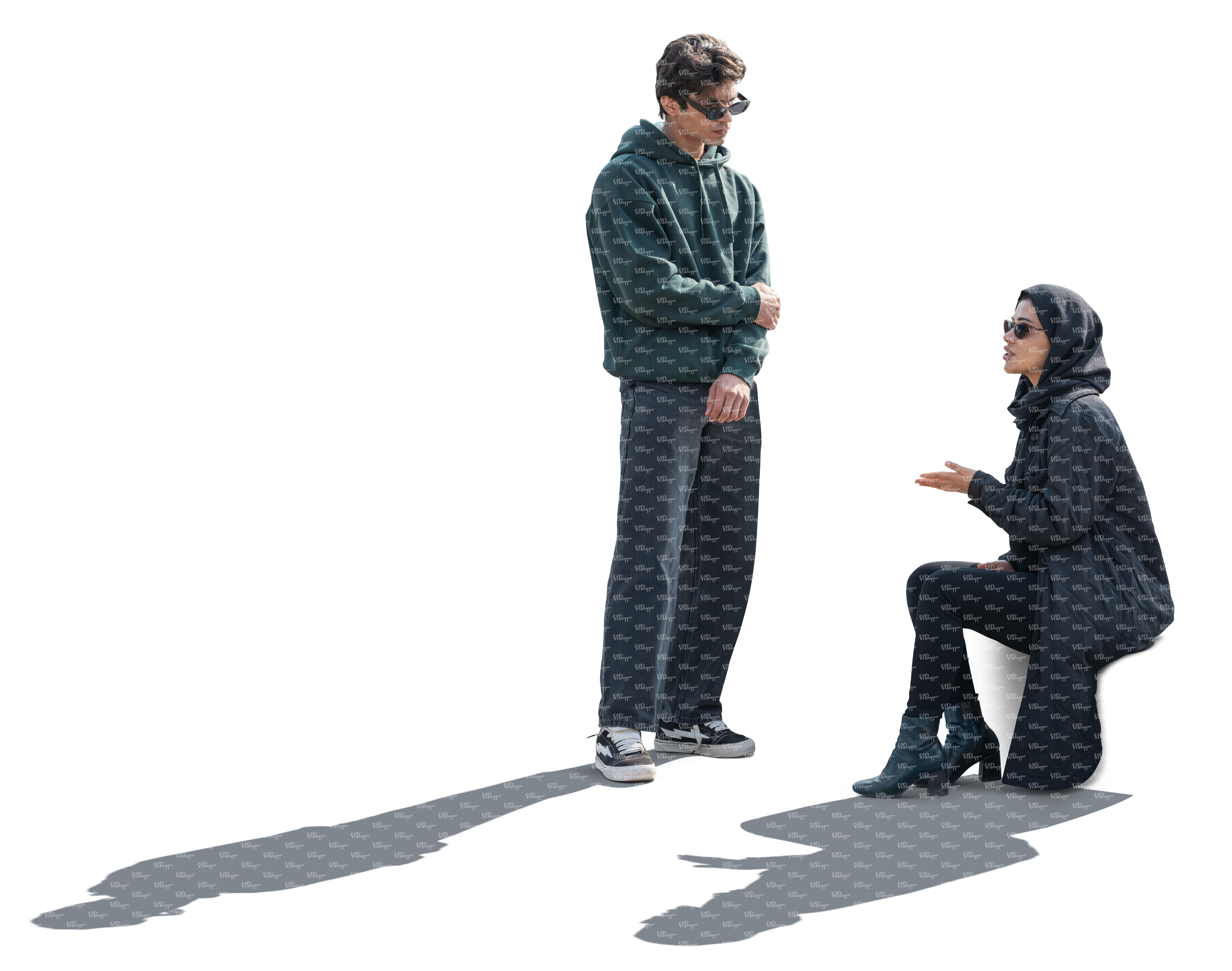 • cut out man and woman walking on a cold day