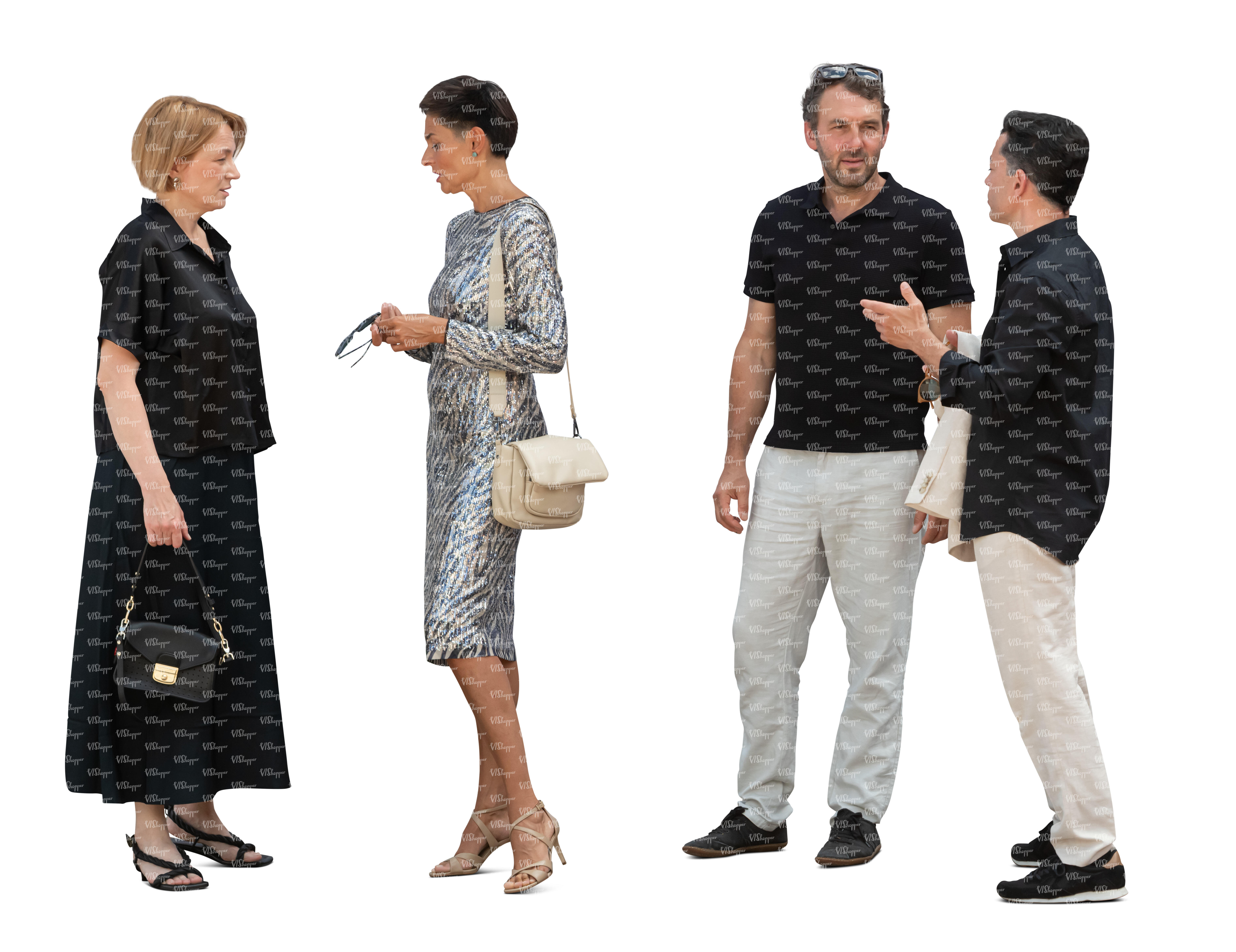 • cut out multinational group of friends walking