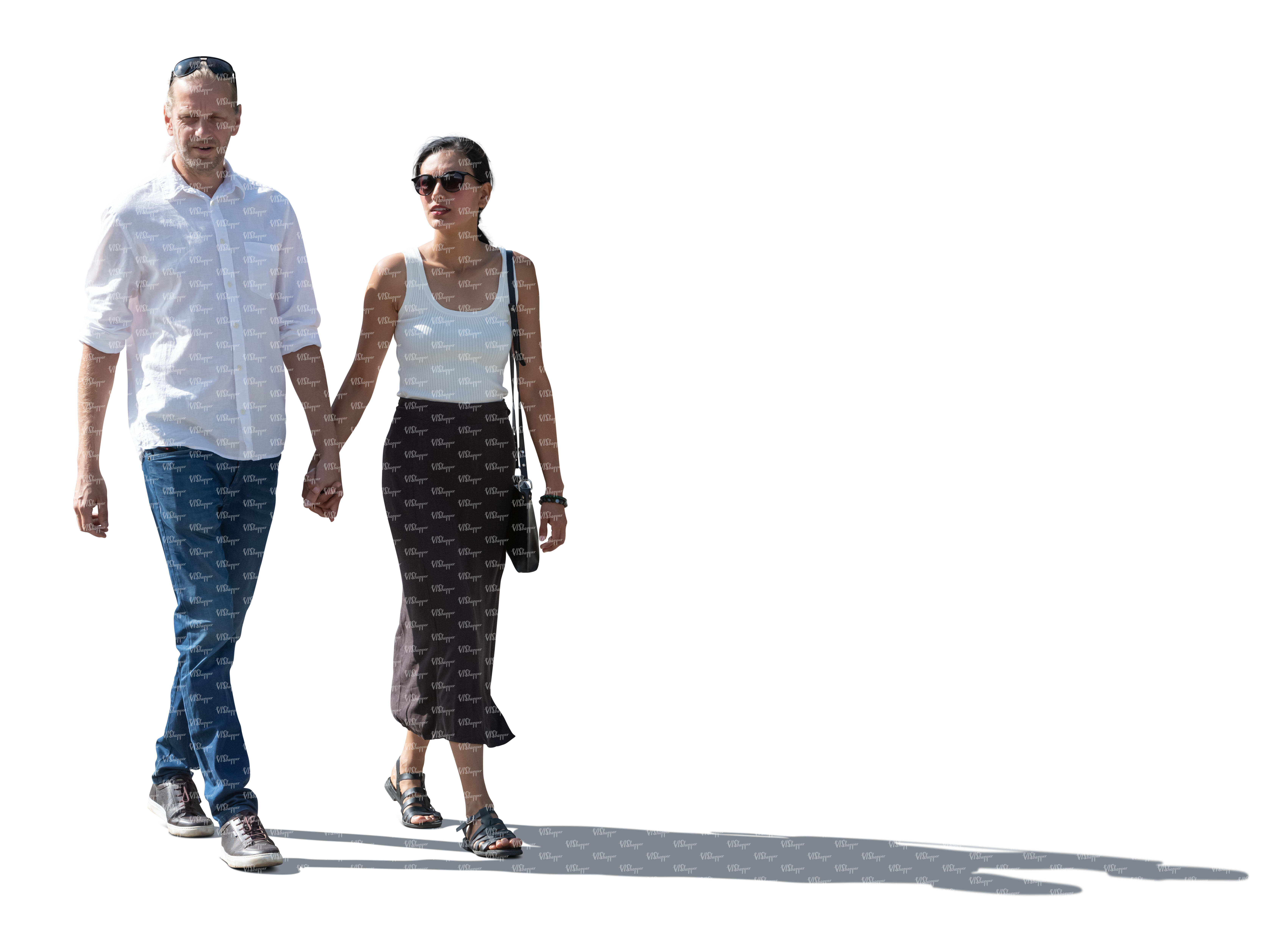 • cut out couple in tree shade walking