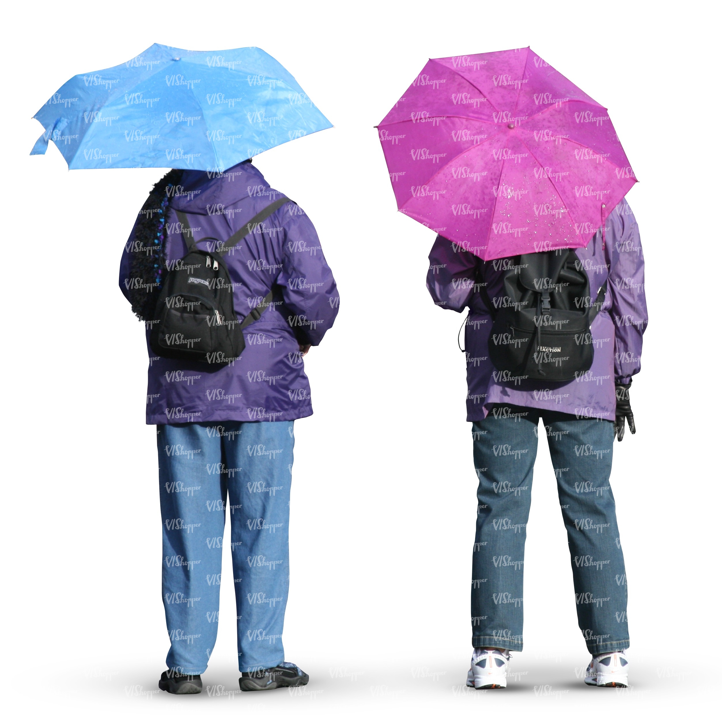 • two people standing with umbrellas