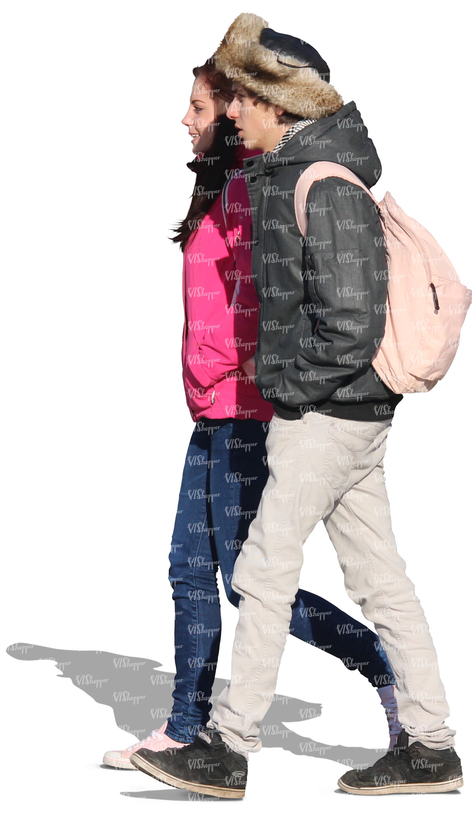 • cut out man and woman standing and talking while drinking refreshing drinks