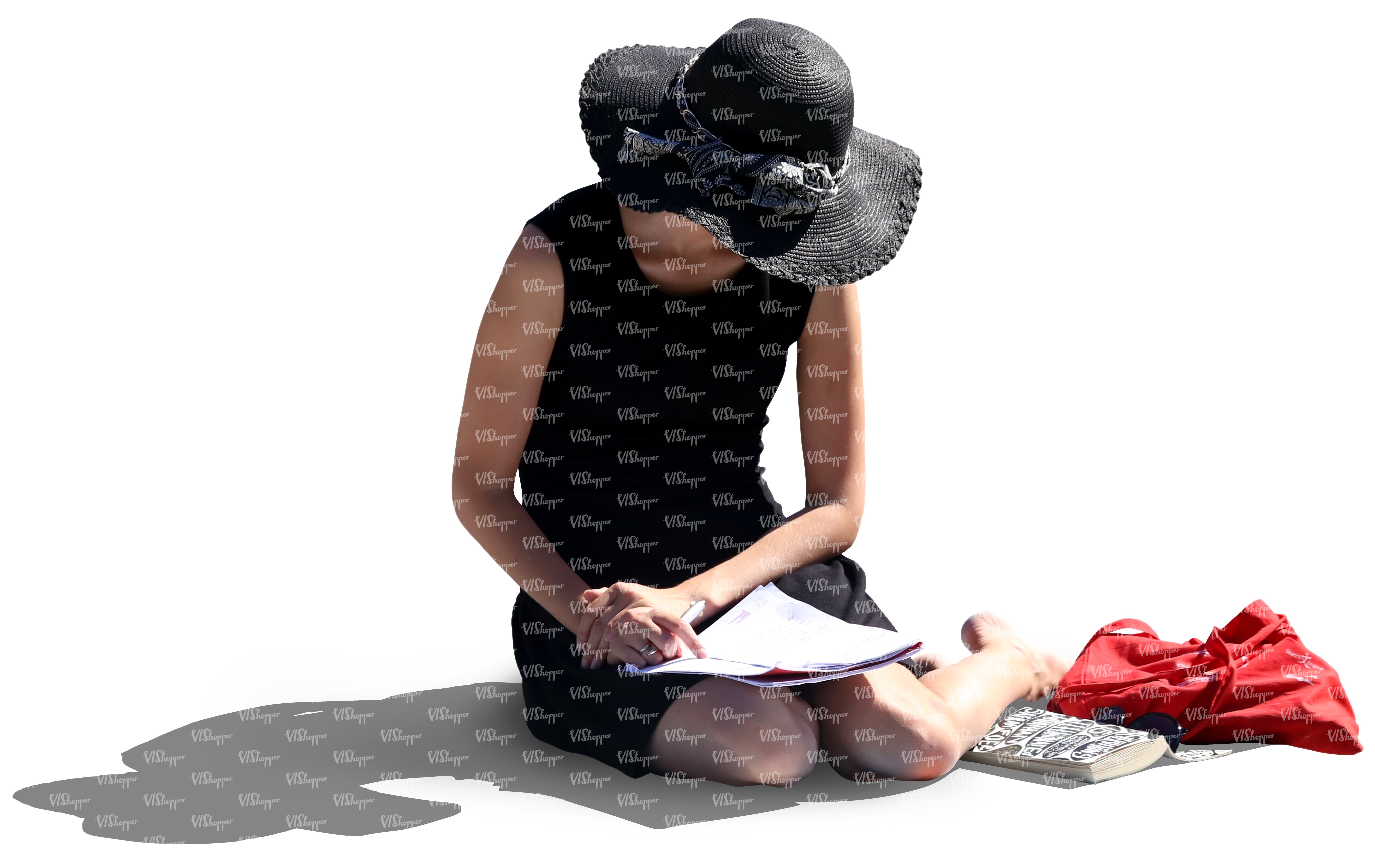 woman with a large hat sitting on the ground and reading