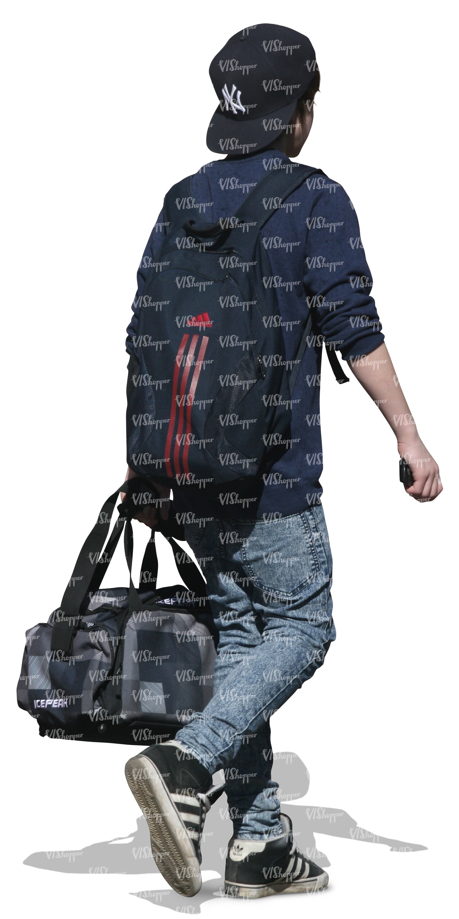 • young boy walking and carrying a sports bag