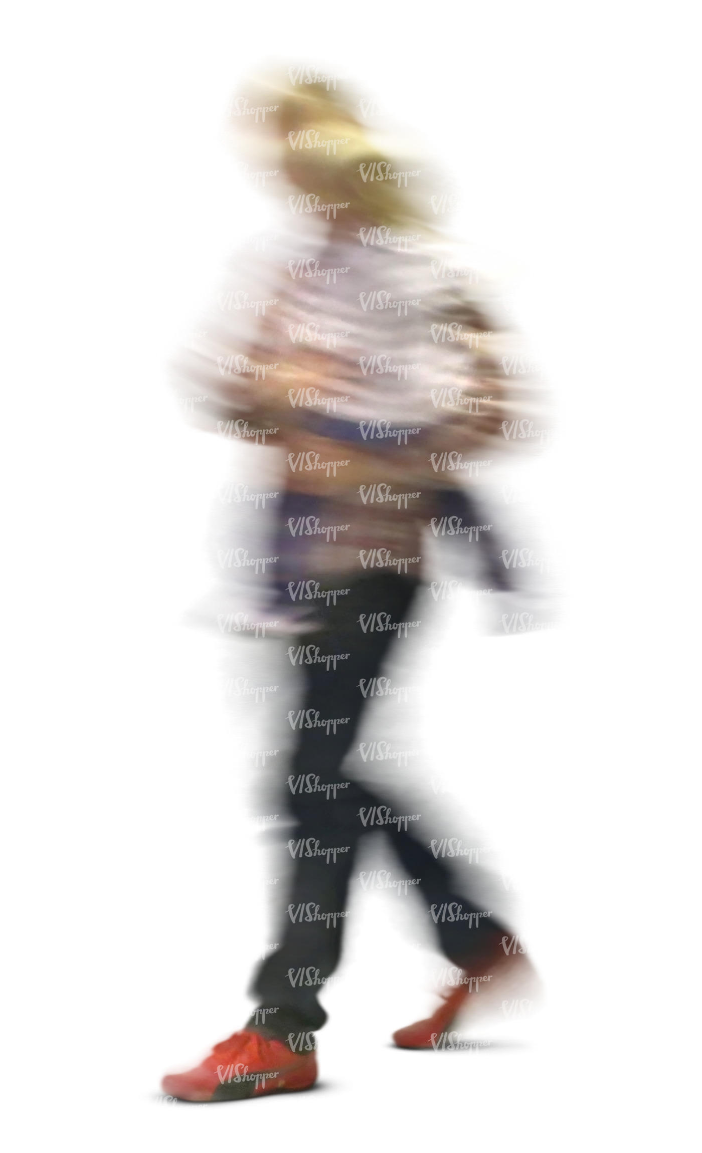 • motion blur image of a woman in a black dress walking