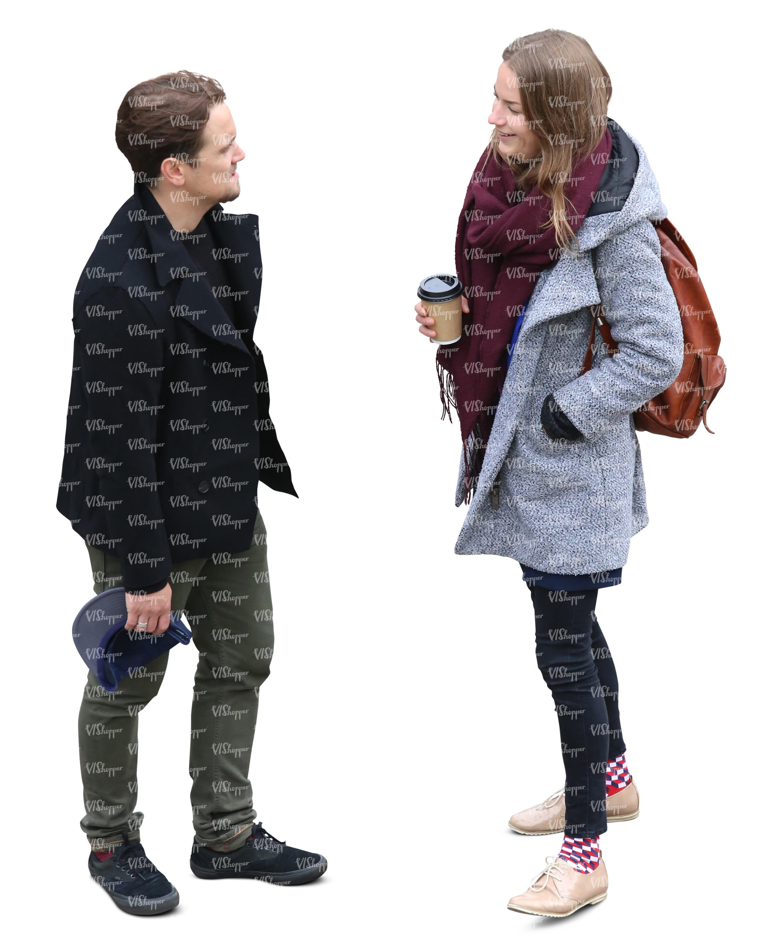 • cut out man and woman walking on a cold day