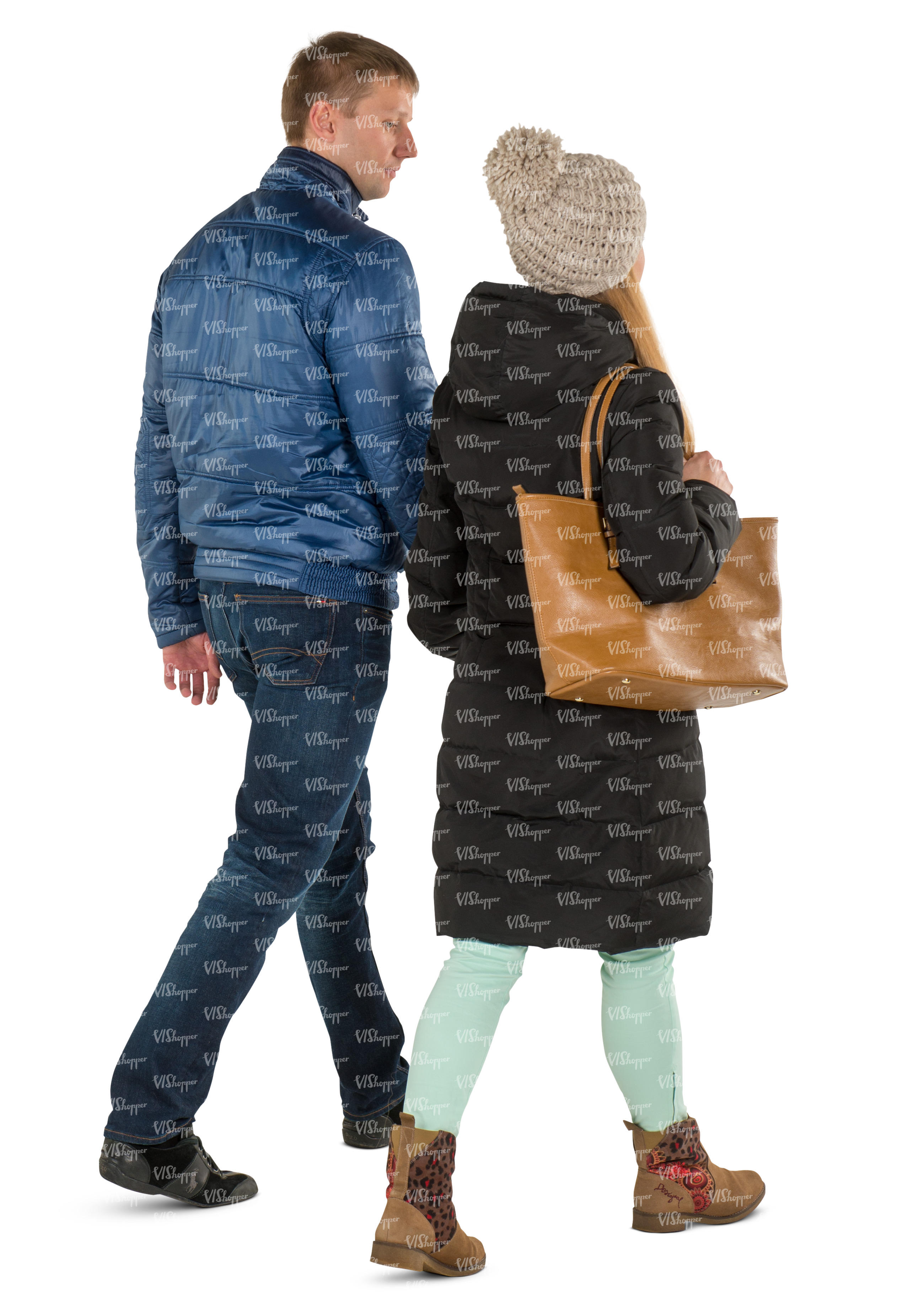 • cut out man and woman walking on a cold day
