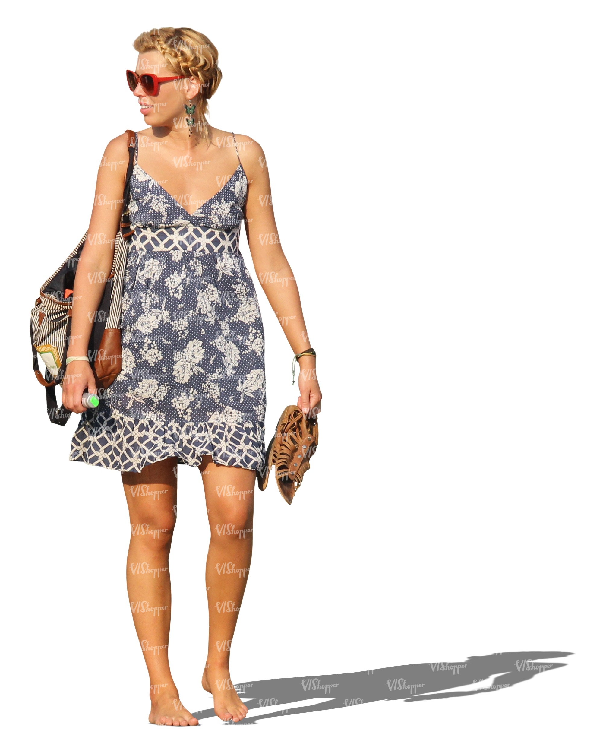 woman in a summer dress walking barefoot