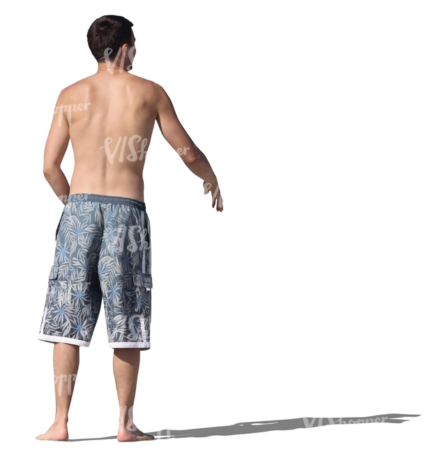 • cut out backlit woman in bikini walking on the beach and holding towel in the air