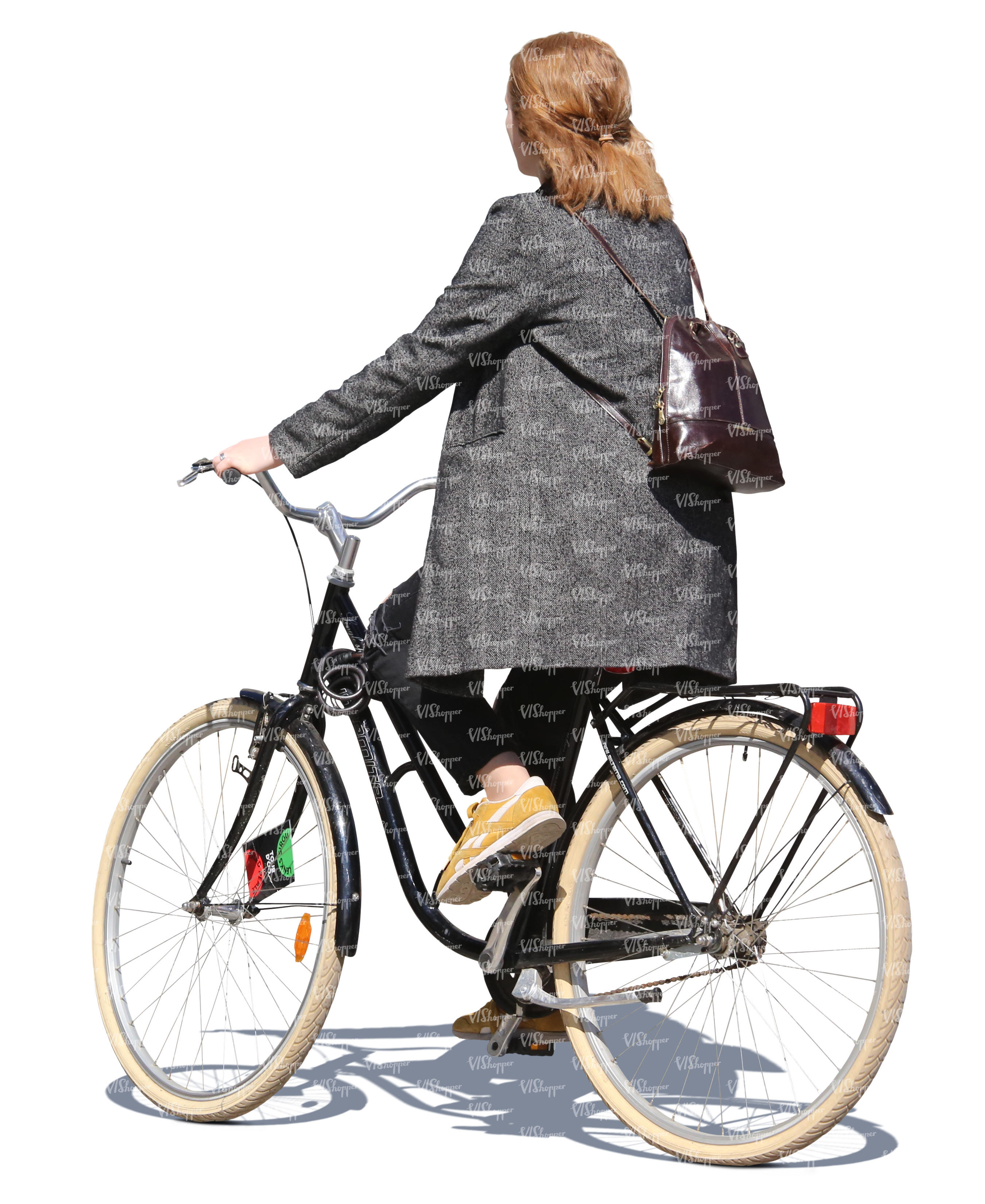 • cut out backlit woman with a bike standing