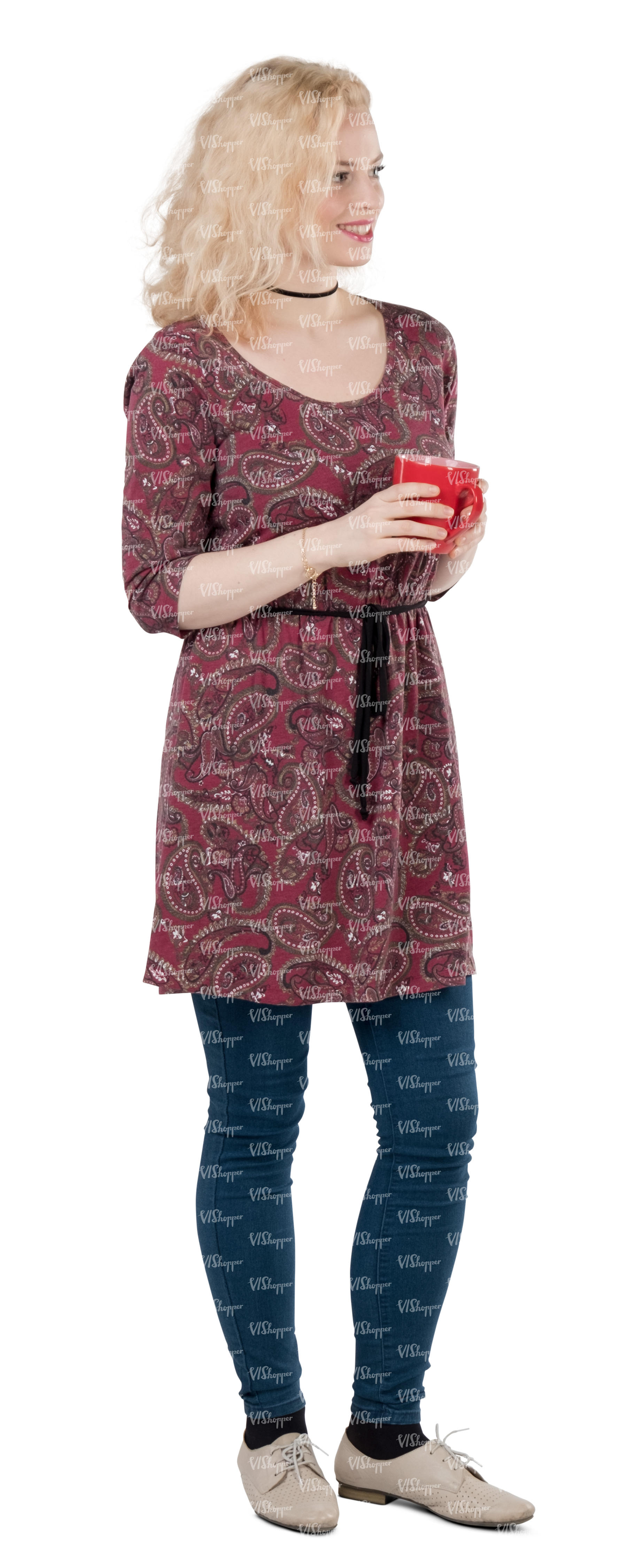 • cut out man and woman standing and talking while drinking refreshing drinks