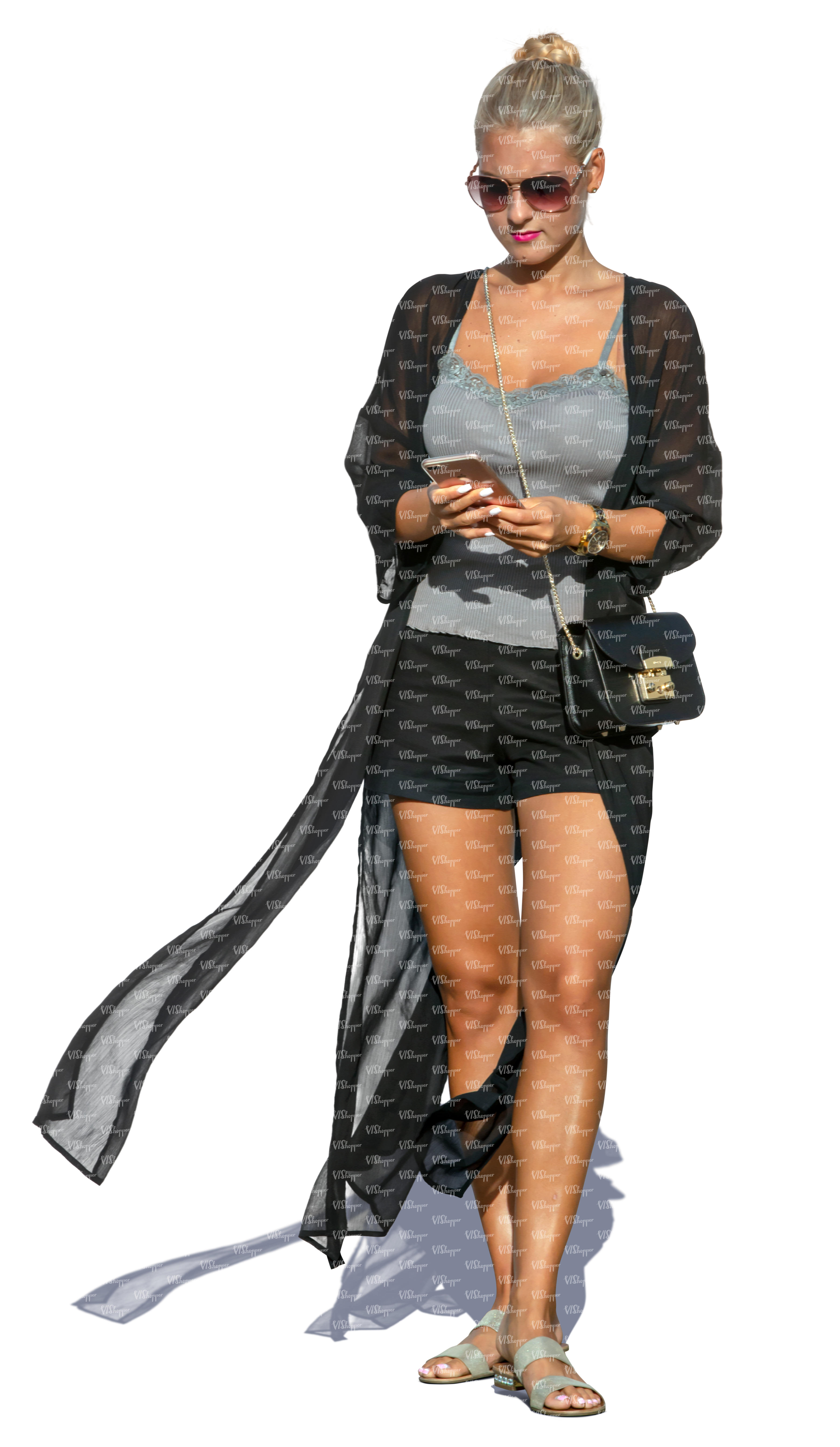 • woman standing and checking her phone