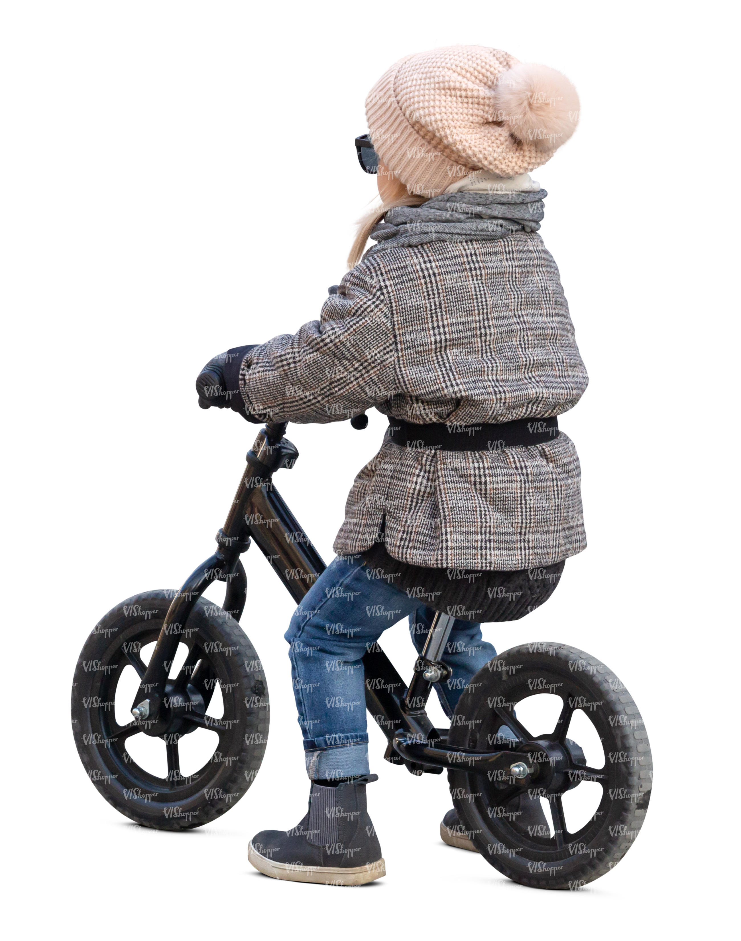 little girl riding a likeabike in autumn