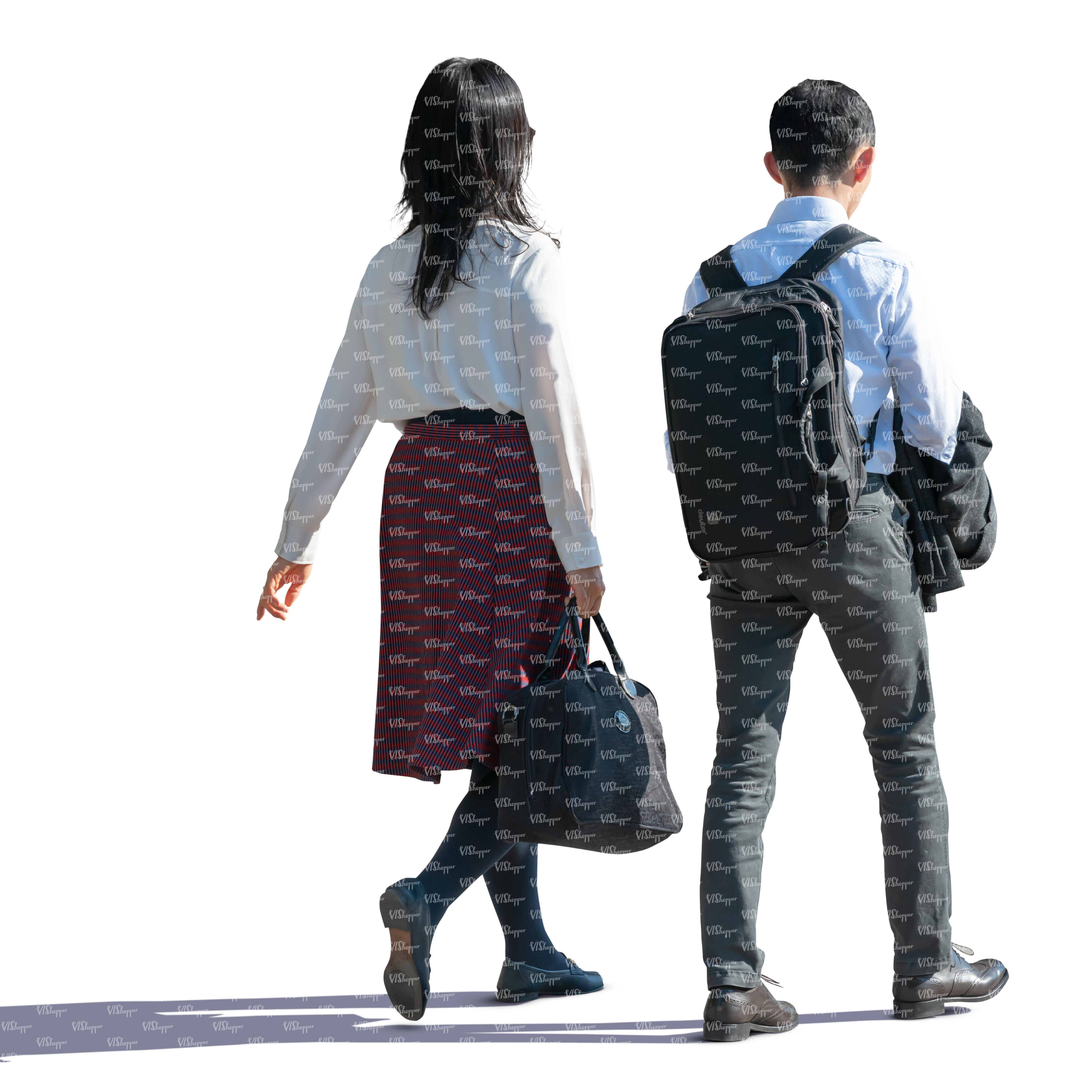 • backlit asian man and woman walking