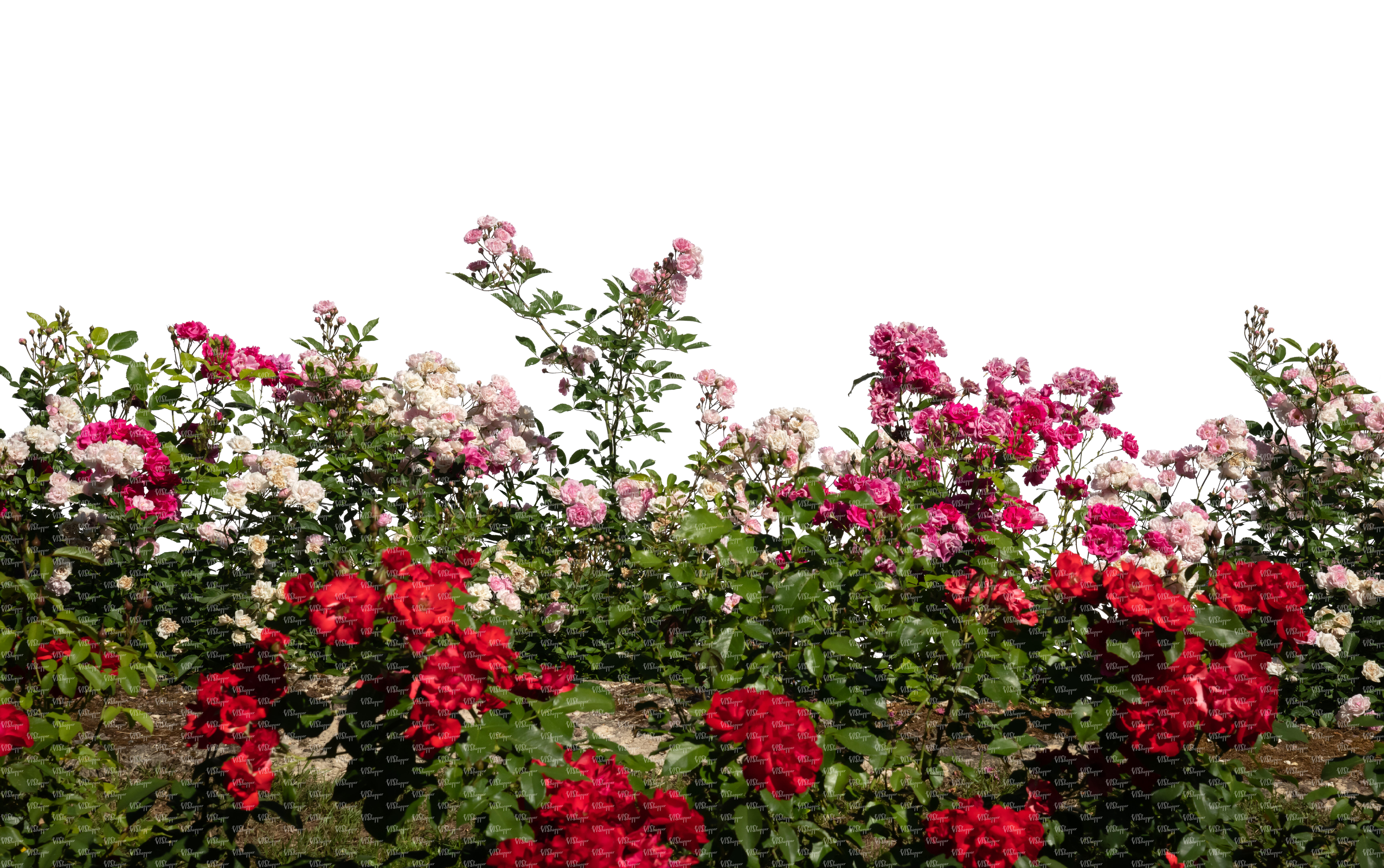 cut out foreground flowerbed of blooming roses