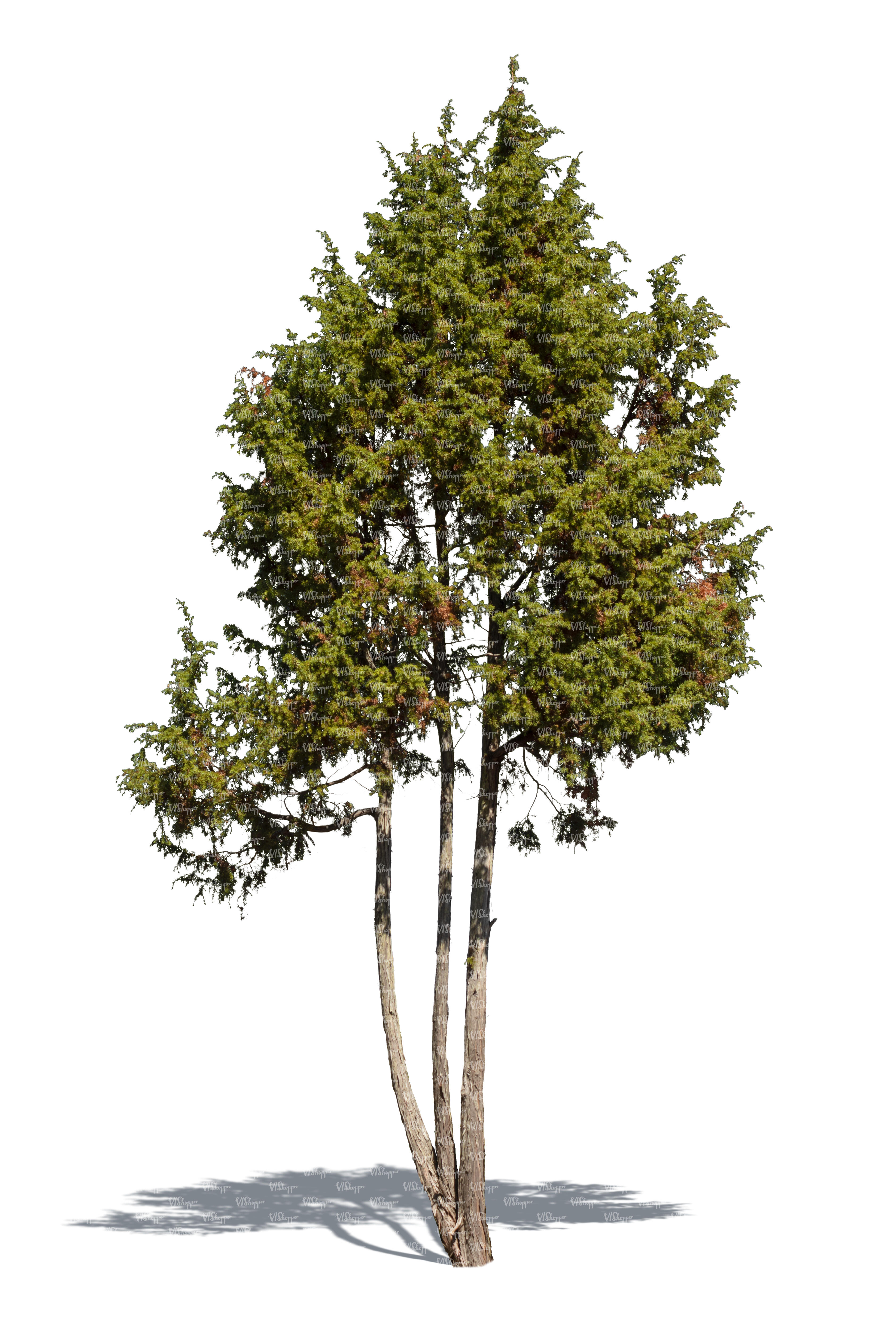 • cut out big juniper tree in sunlight
