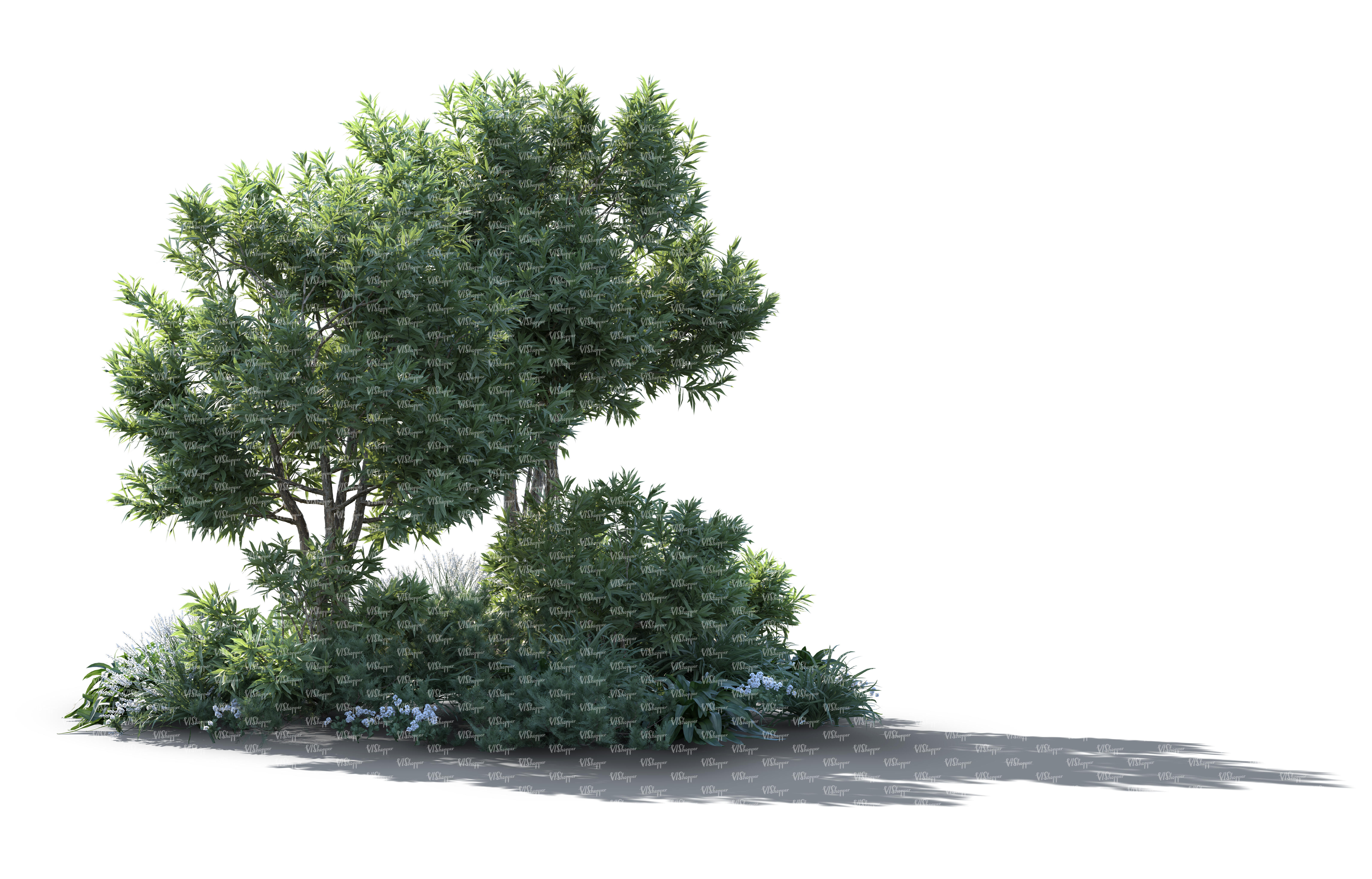 • foreground in sunlight with benches and flowerbeds on separate layers