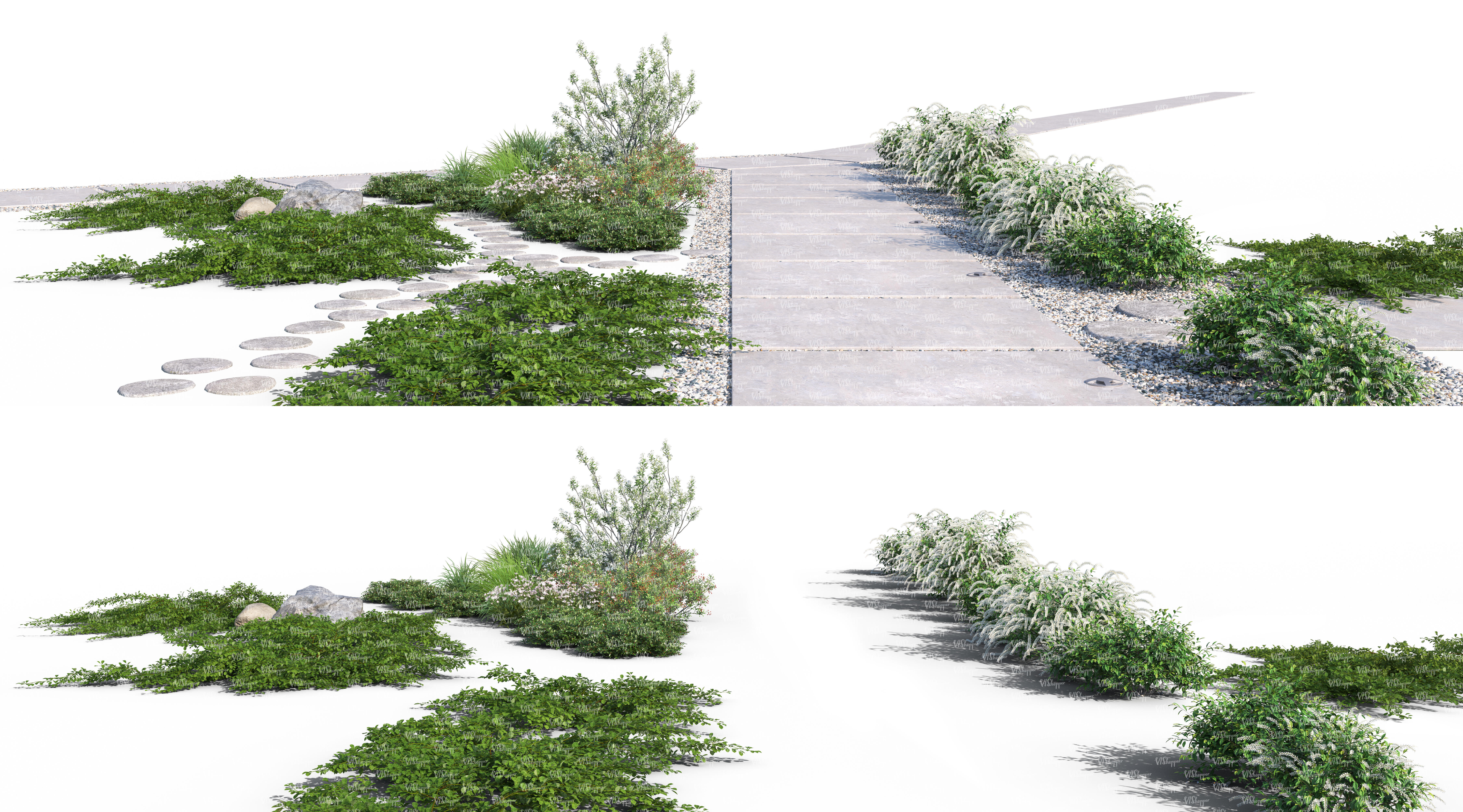 • foreground in sunlight with benches and flowerbeds on separate layers