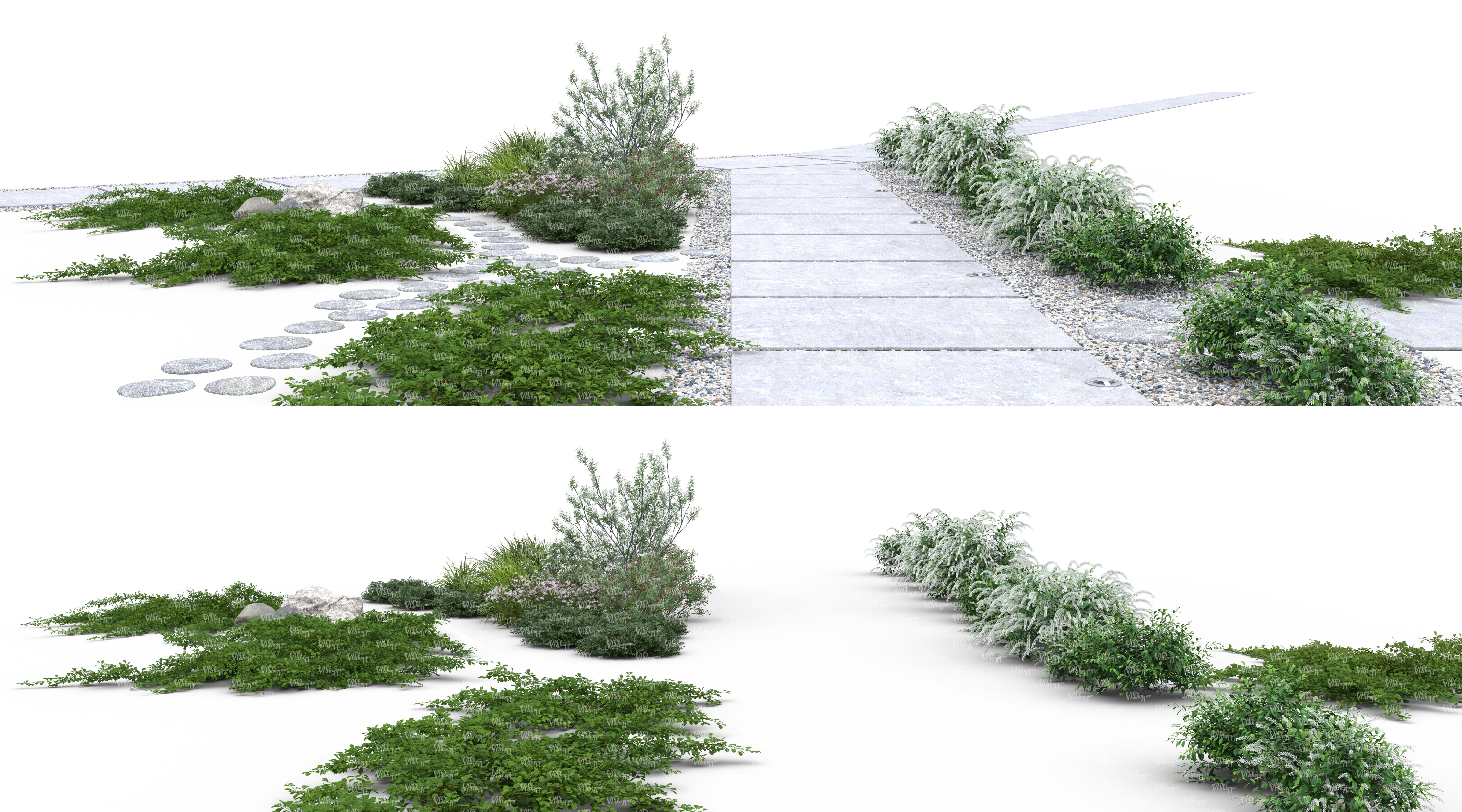 • foreground in sunlight with benches and flowerbeds on separate layers